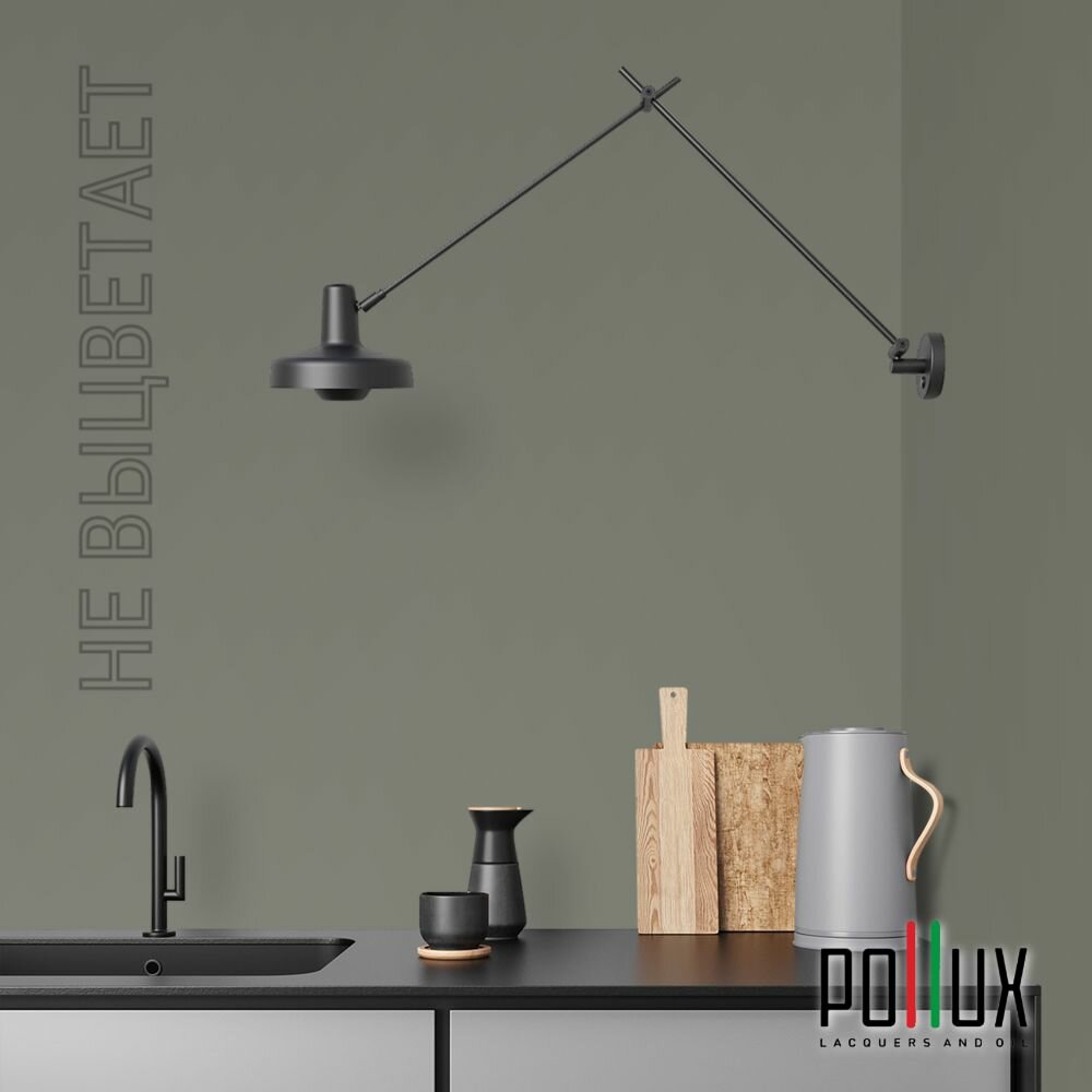 Краска моющаяся интерьерная для стен и потолков, Pollux INTERIOR без запаха, быстросохнущая, акриловая, матовое покрытие, цвет NCS S 7020-G50Y, 1л.