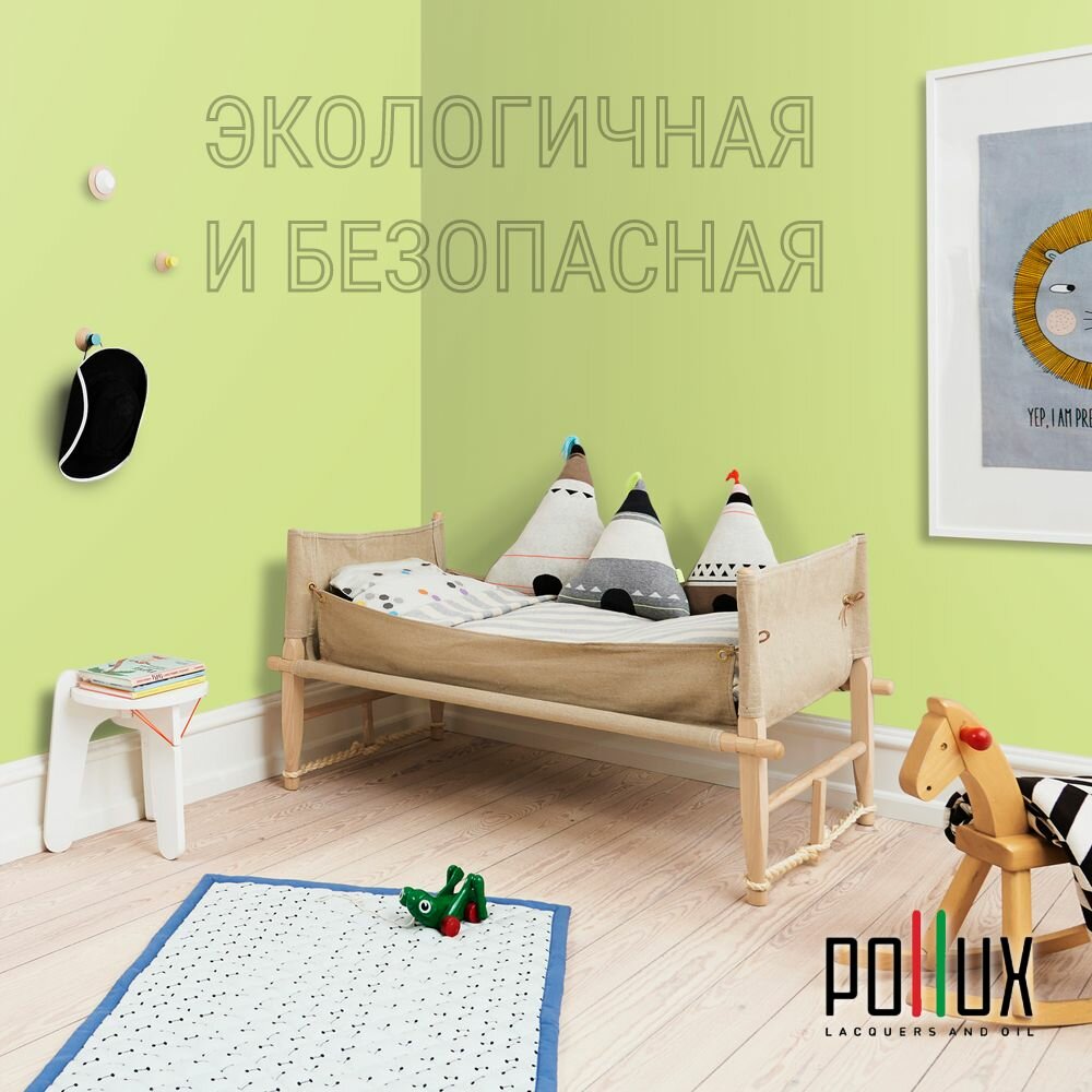 Краска моющаяся интерьерная для стен и потолков, Pollux INTERIOR без запаха, быстросохнущая, акриловая, матовое покрытие, цвет NCS S 4050-G50Y, 1л.