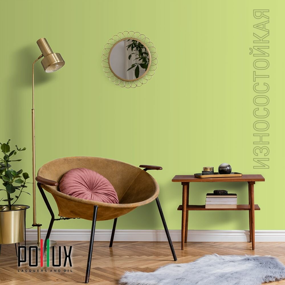 Краска моющаяся интерьерная для стен и потолков, Pollux INTERIOR без запаха, быстросохнущая, акриловая, матовое покрытие, цвет NCS S 6010-G50Y, 1л.