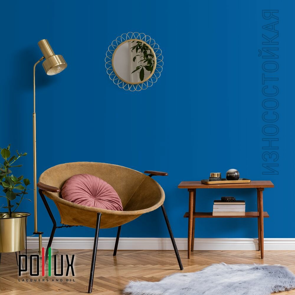 Краска моющаяся интерьерная для стен и потолков, Pollux INTERIOR без запаха, быстросохнущая, акриловая, матовое покрытие, цвет NCS S 4550-R90B, 1л.