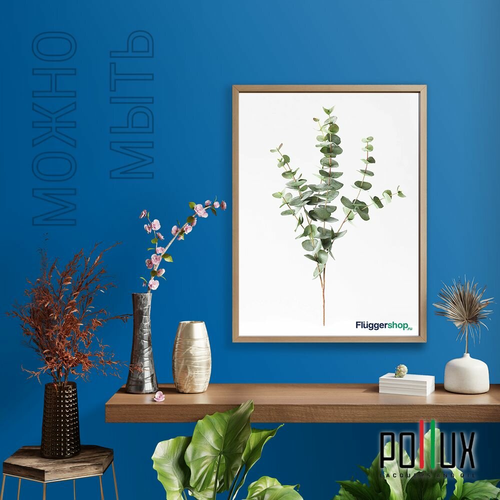 Краска моющаяся интерьерная для стен и потолков, Pollux INTERIOR без запаха, быстросохнущая, акриловая, матовое покрытие, цвет NCS S 4050-R90B, 1л.