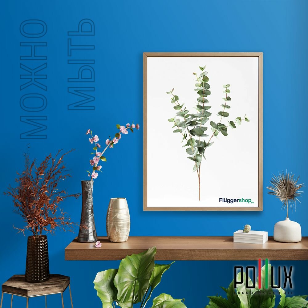 Краска моющаяся интерьерная для стен и потолков, Pollux INTERIOR без запаха, быстросохнущая, акриловая, матовое покрытие, цвет NCS S 4050-R90B, 1л.
