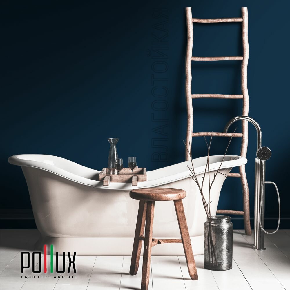 Краска моющаяся интерьерная для стен и потолков, Pollux INTERIOR без запаха, быстросохнущая, акриловая, матовое покрытие, цвет NCS S 8010-R90B, 1л.