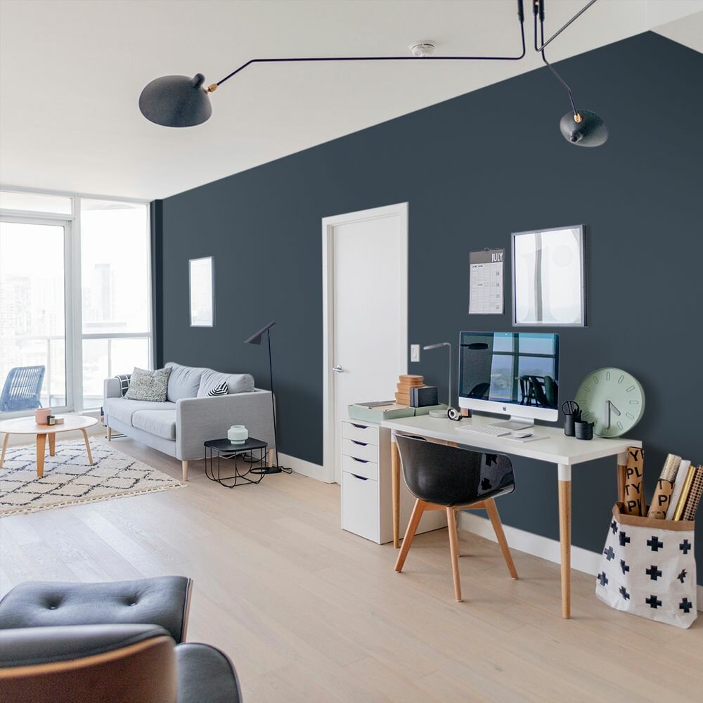 Краска моющаяся интерьерная для стен и потолков, Pollux INTERIOR без запаха, быстросохнущая, акриловая, матовое покрытие, цвет NCS S 4050-R90B, 1л.