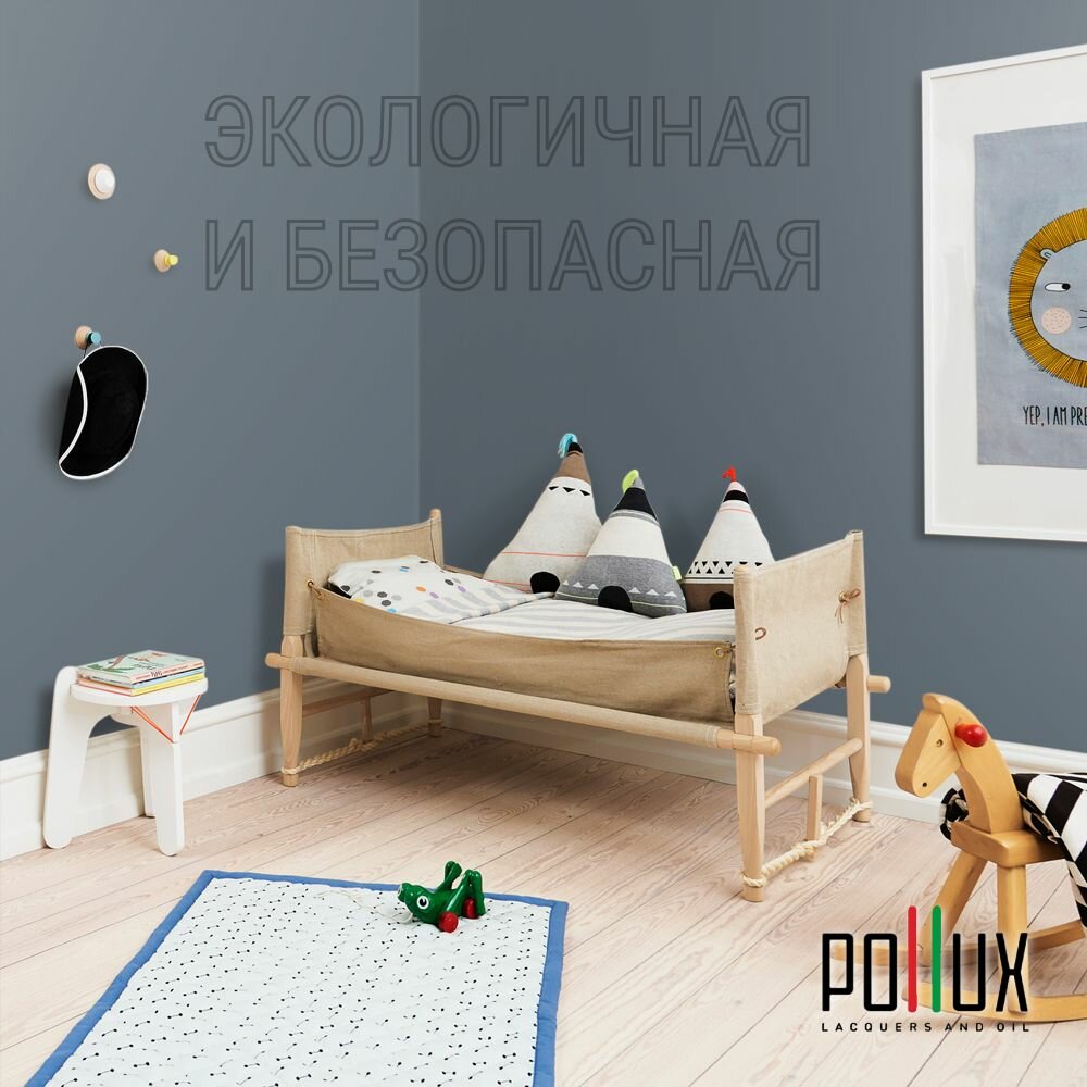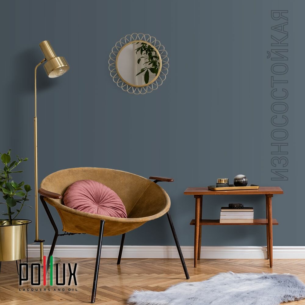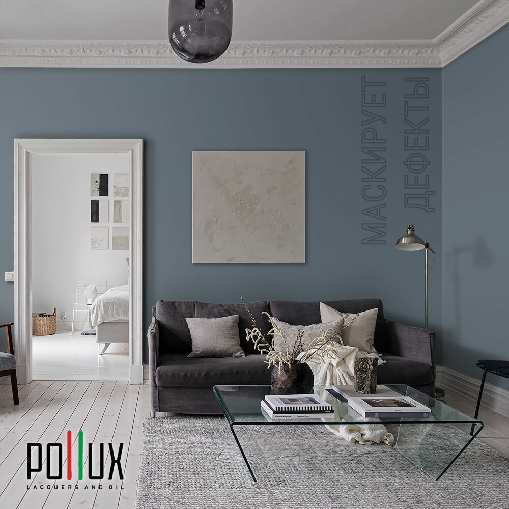 Краска моющаяся интерьерная для стен и потолков, Pollux INTERIOR без запаха, быстросохнущая, акриловая, матовое покрытие, цвет NCS S 8010-R90B, 1л.