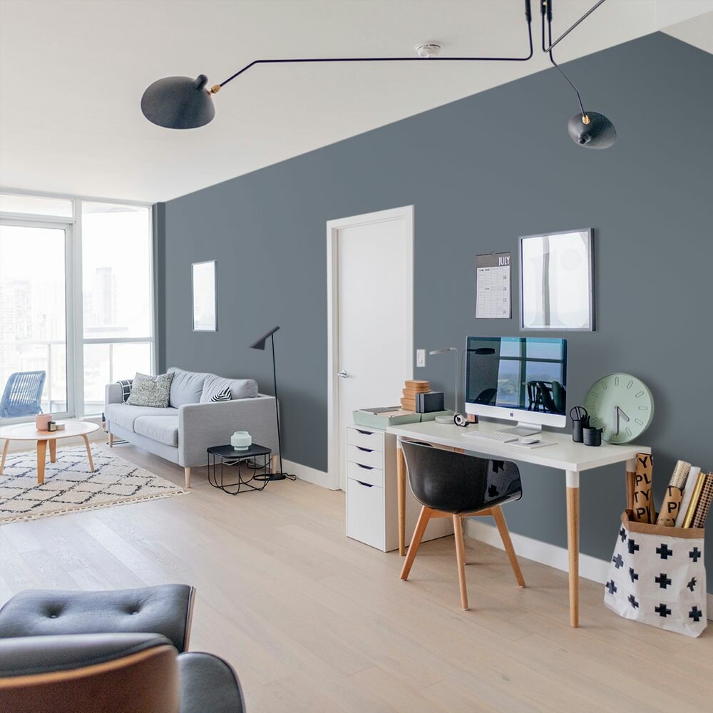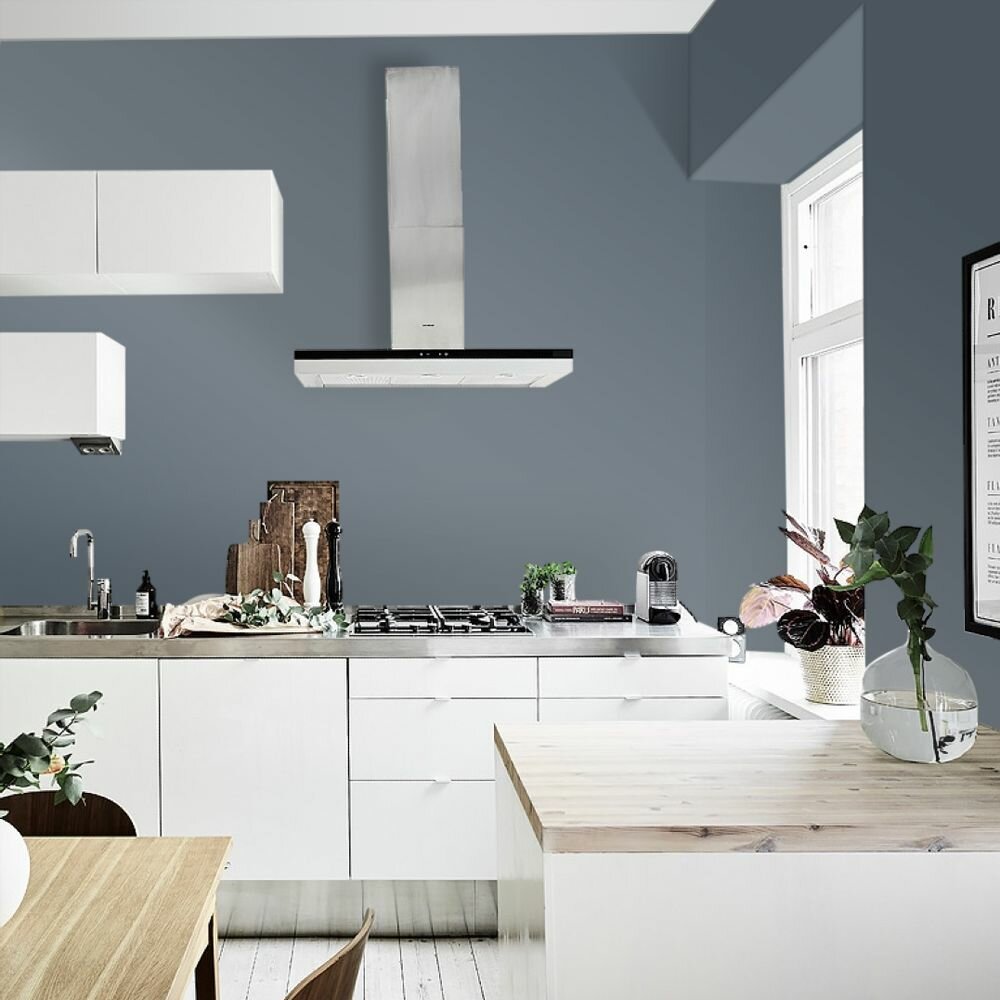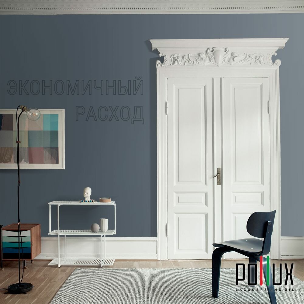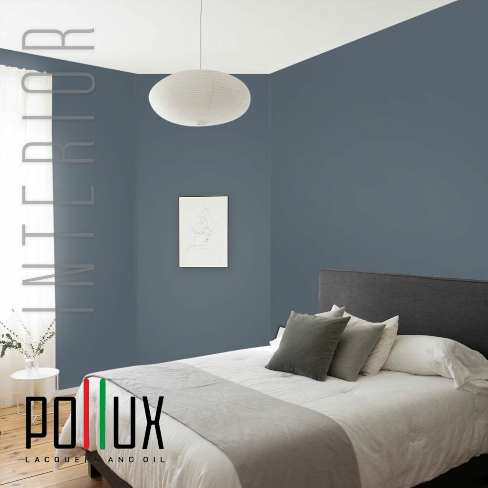 Краска моющаяся интерьерная для стен и потолков, Pollux INTERIOR без запаха, быстросохнущая, акриловая, матовое покрытие, цвет NCS S 4050-R90B, 1л.