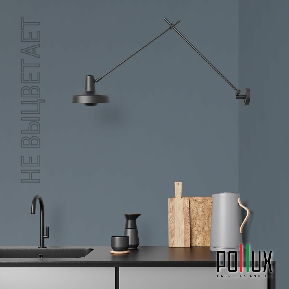 Краска моющаяся интерьерная для стен и потолков, Pollux INTERIOR без запаха, быстросохнущая, акриловая, матовое покрытие, цвет NCS S 7020-R90B, 1л.