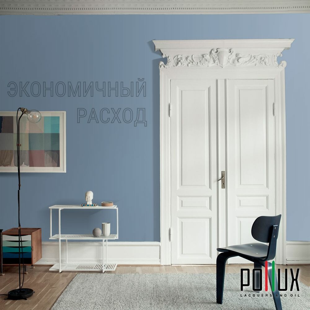 Краска моющаяся интерьерная для стен и потолков, Pollux INTERIOR без запаха, быстросохнущая, акриловая, матовое покрытие, цвет NCS S 4050-R90B, 1л.