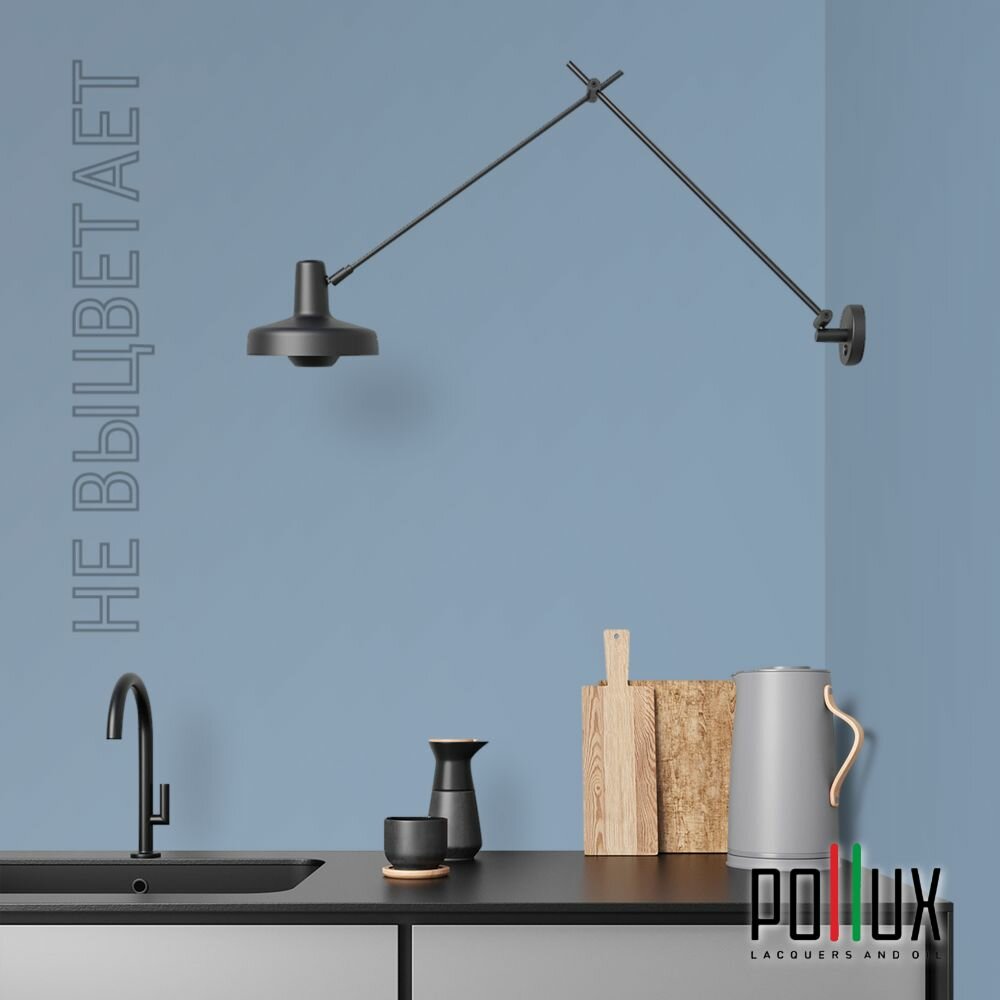 Краска моющаяся интерьерная для стен и потолков, Pollux INTERIOR без запаха, быстросохнущая, акриловая, матовое покрытие, цвет NCS S 8010-R90B, 1л.