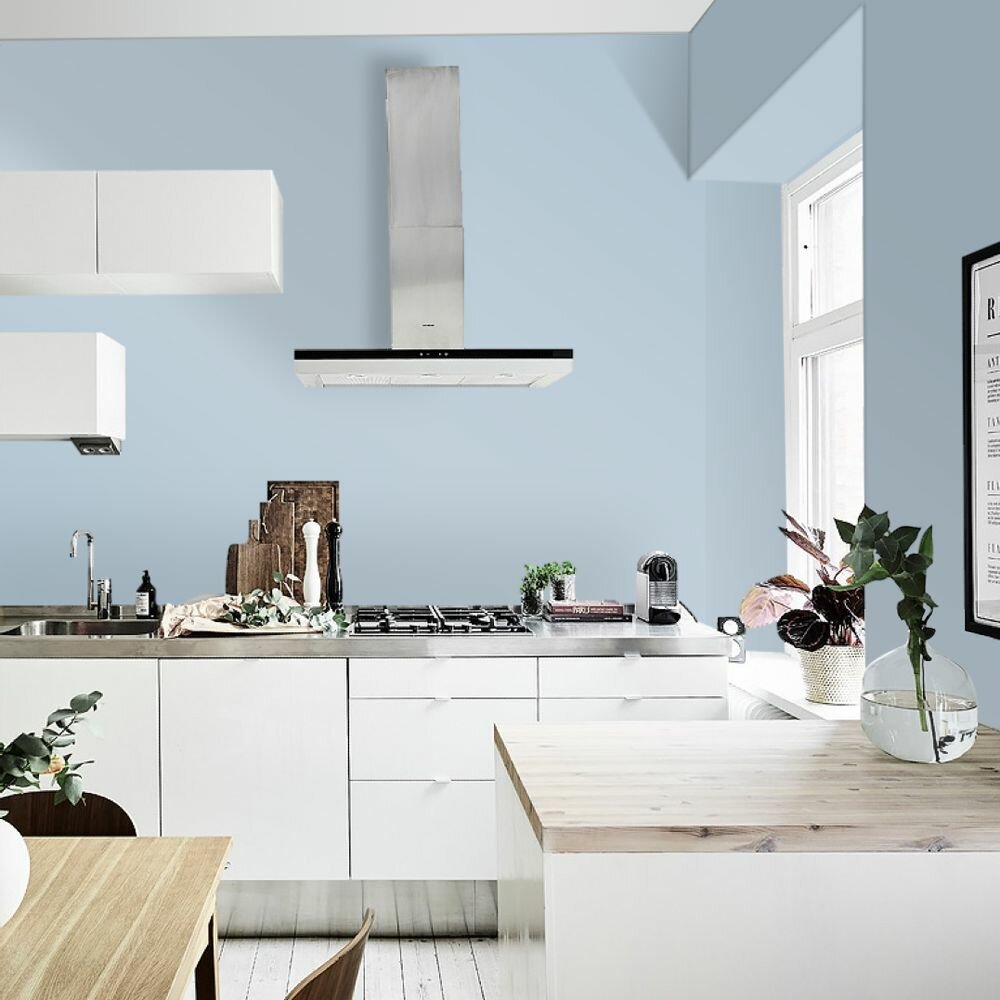 Краска моющаяся интерьерная для стен и потолков, Pollux INTERIOR без запаха, быстросохнущая, акриловая, матовое покрытие, цвет NCS S 4050-R90B, 1л.