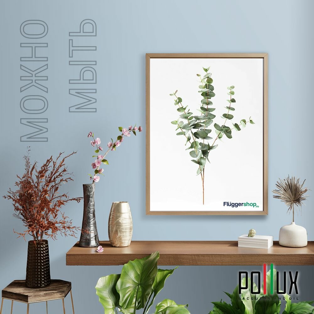 Краска моющаяся интерьерная для стен и потолков, Pollux INTERIOR без запаха, быстросохнущая, акриловая, матовое покрытие, цвет NCS S 5010-R90B, 1л.