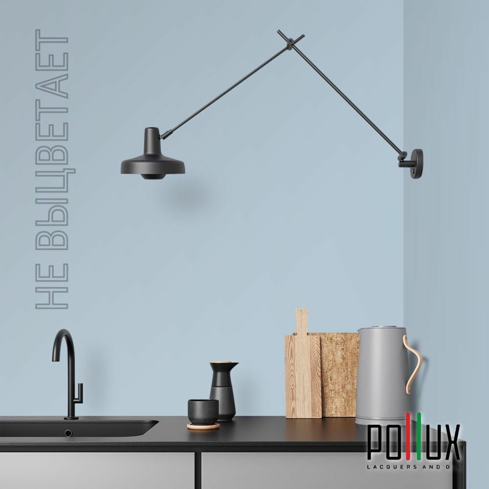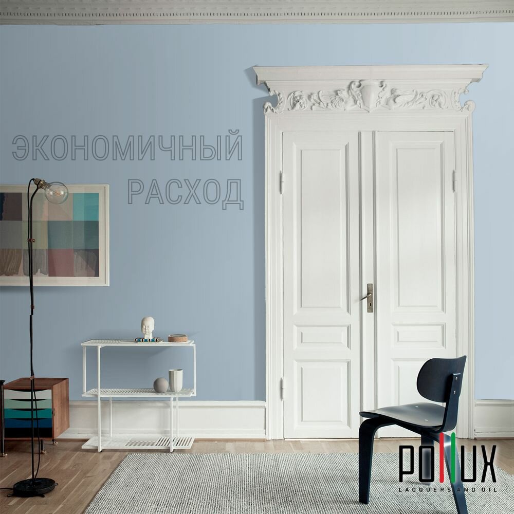 Краска моющаяся интерьерная для стен и потолков, Pollux INTERIOR без запаха, быстросохнущая, акриловая, матовое покрытие, цвет NCS S 8010-R90B, 1л.
