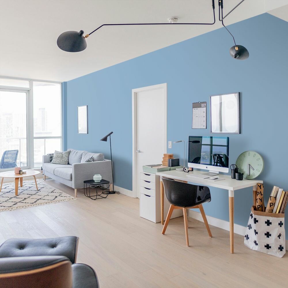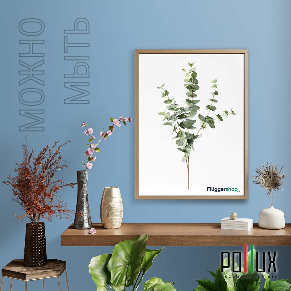 Краска моющаяся интерьерная для стен и потолков, Pollux INTERIOR без запаха, быстросохнущая, акриловая, матовое покрытие, цвет NCS S 4050-R90B, 1л.