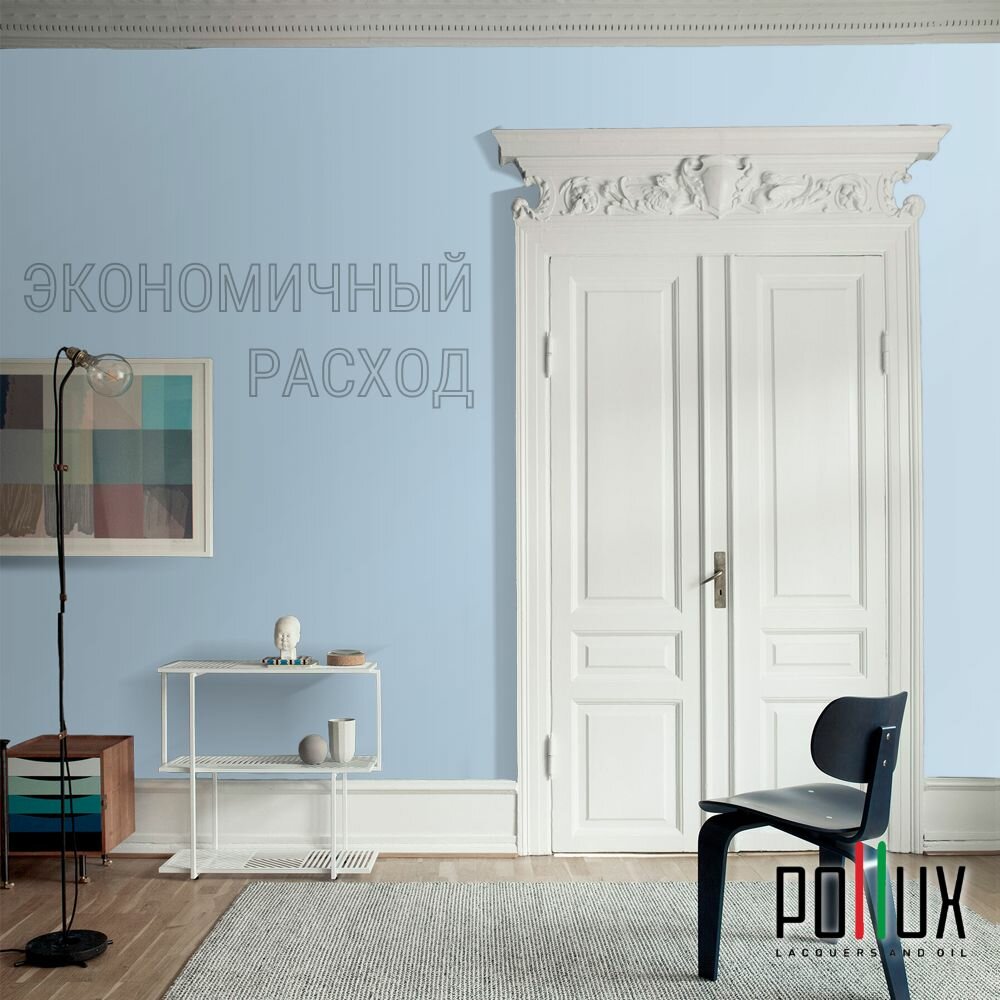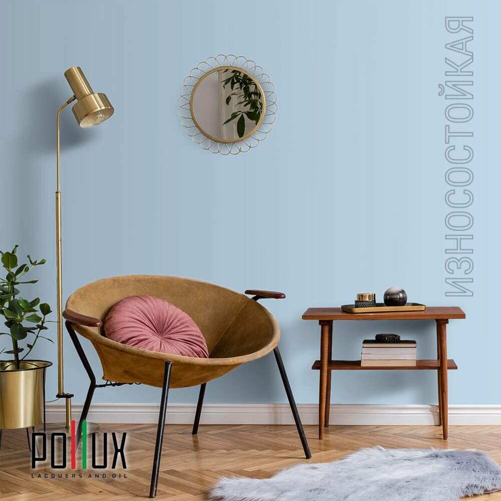 Краска моющаяся интерьерная для стен и потолков, Pollux INTERIOR без запаха, быстросохнущая, акриловая, матовое покрытие, цвет NCS S 5010-R90B, 1л.