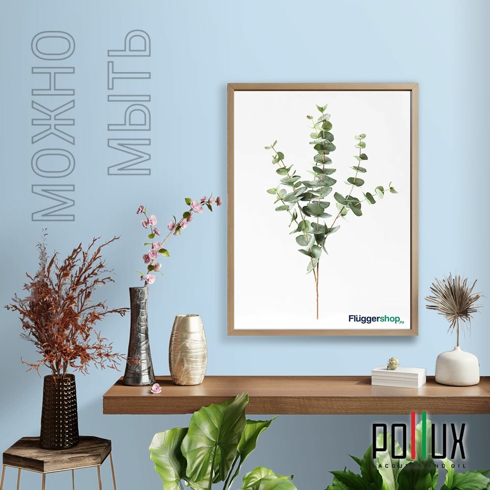 Краска моющаяся интерьерная для стен и потолков, Pollux INTERIOR без запаха, быстросохнущая, акриловая, матовое покрытие, цвет NCS S 4050-R90B, 1л.