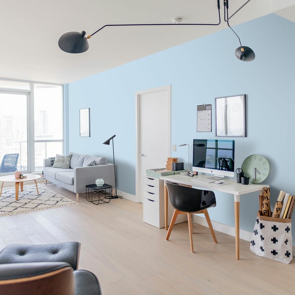 Краска моющаяся интерьерная для стен и потолков, Pollux INTERIOR без запаха, быстросохнущая, акриловая, матовое покрытие, цвет NCS S 5020-R90B, 1л.