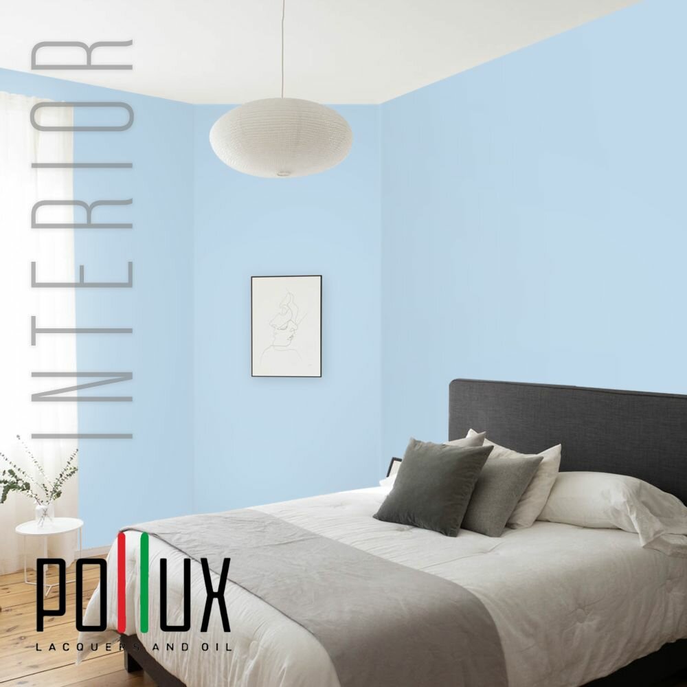 Краска моющаяся интерьерная для стен и потолков, Pollux INTERIOR без запаха, быстросохнущая, акриловая, матовое покрытие, цвет NCS S 2050-R90B, 1л.