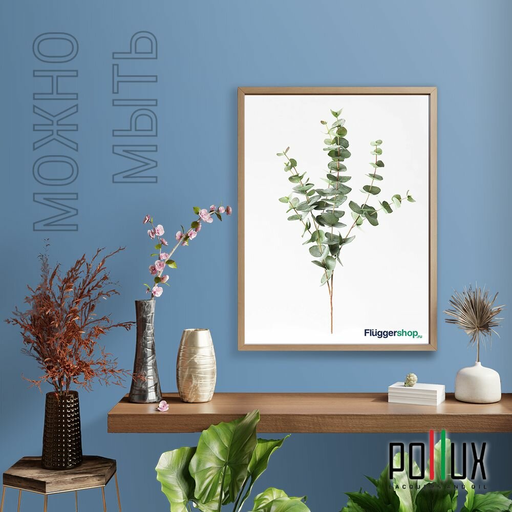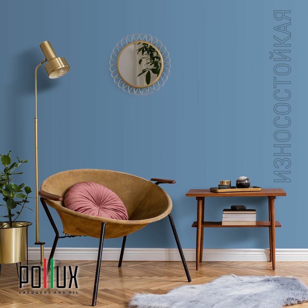 Краска моющаяся интерьерная для стен и потолков, Pollux INTERIOR без запаха, быстросохнущая, акриловая, матовое покрытие, цвет NCS S 4050-R90B, 1л.