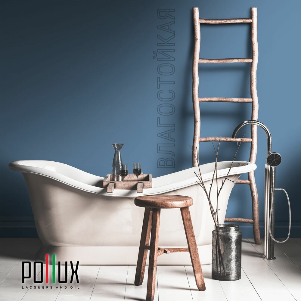 Краска моющаяся интерьерная для стен и потолков, Pollux INTERIOR без запаха, быстросохнущая, акриловая, матовое покрытие, цвет NCS S 8010-R90B, 1л.