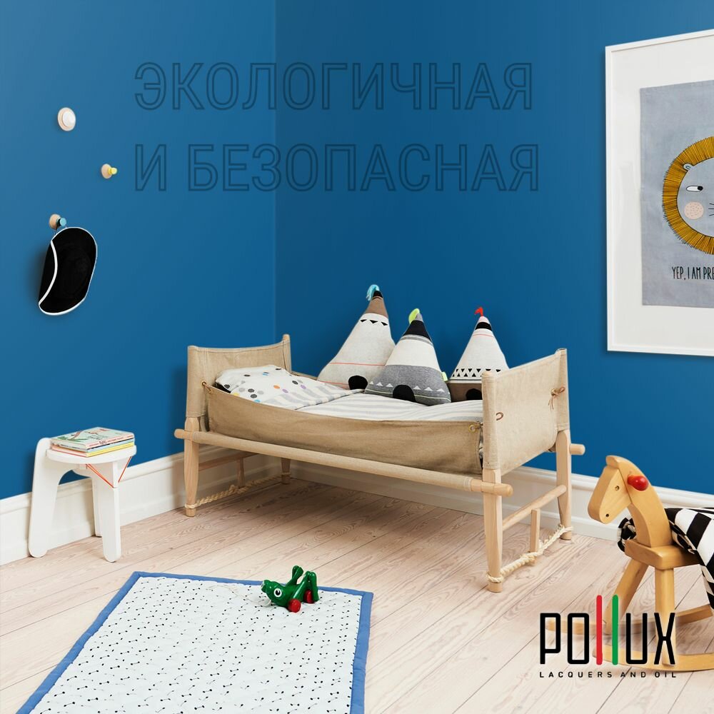 Краска моющаяся интерьерная для стен и потолков, Pollux INTERIOR без запаха, быстросохнущая, акриловая, матовое покрытие, цвет NCS S 4050-R90B, 1л.