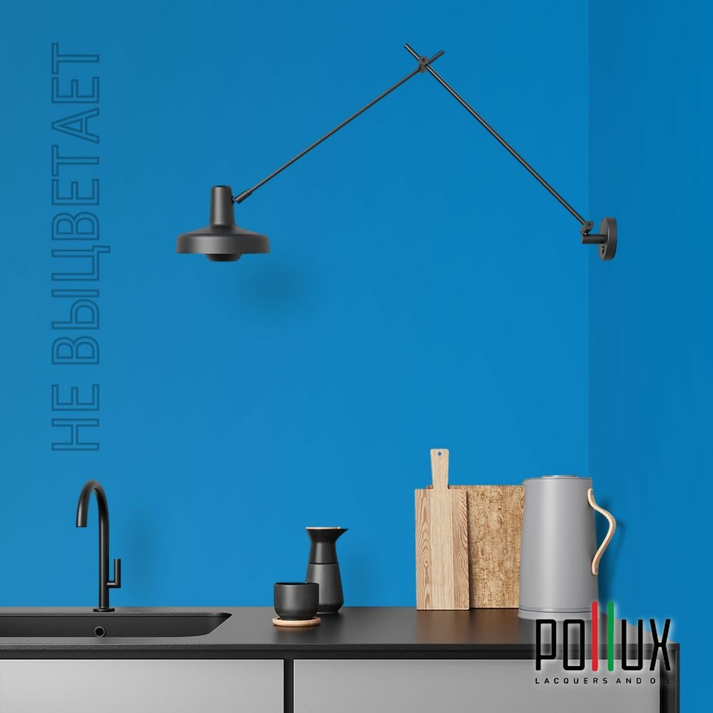 Краска моющаяся интерьерная для стен и потолков, Pollux INTERIOR без запаха, быстросохнущая, акриловая, матовое покрытие, цвет NCS S 4050-R90B, 1л.