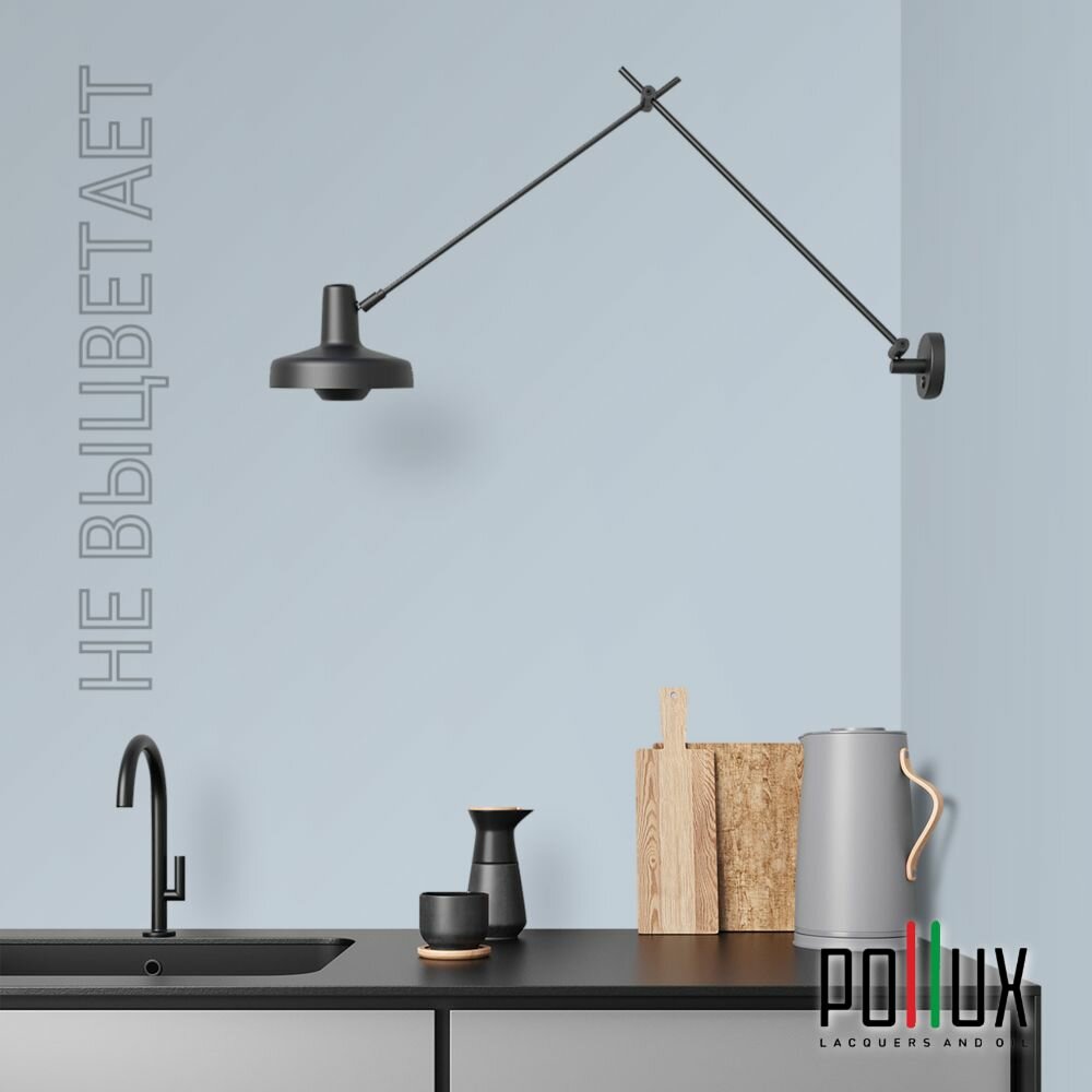 Краска моющаяся интерьерная для стен и потолков, Pollux INTERIOR без запаха, быстросохнущая, акриловая, матовое покрытие, цвет NCS S 7010-R90B, 1л.