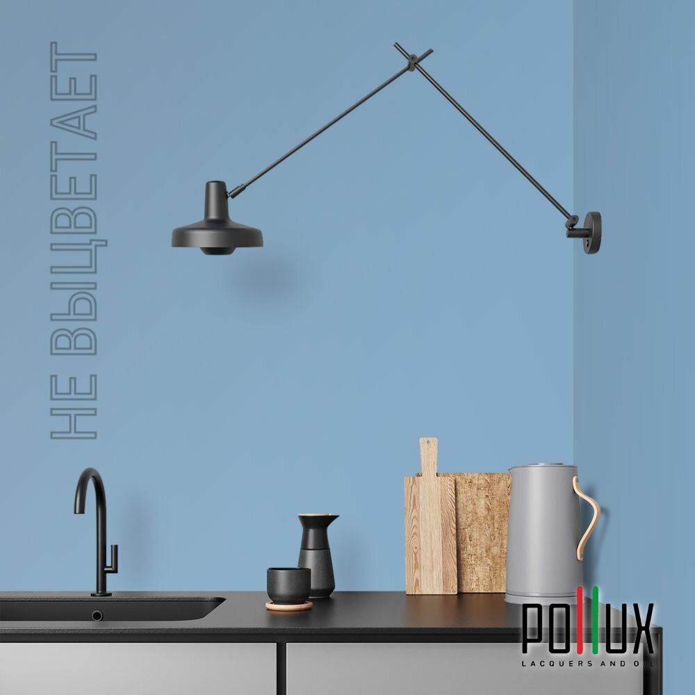Краска моющаяся интерьерная для стен и потолков, Pollux INTERIOR без запаха, быстросохнущая, акриловая, матовое покрытие, цвет NCS S 5020-R90B, 1л.