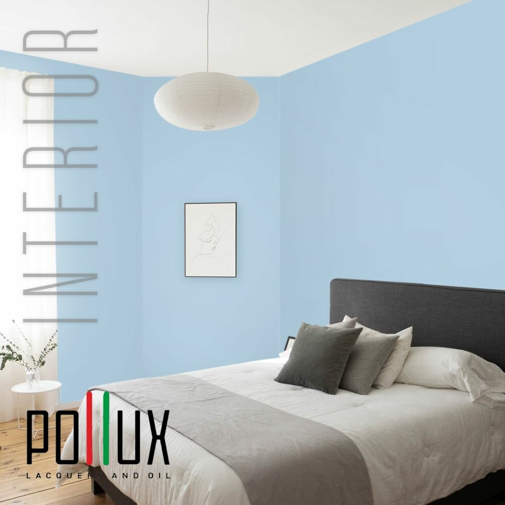 Краска моющаяся интерьерная для стен и потолков, Pollux INTERIOR без запаха, быстросохнущая, акриловая, матовое покрытие, цвет NCS S 4550-R90B, 1л.