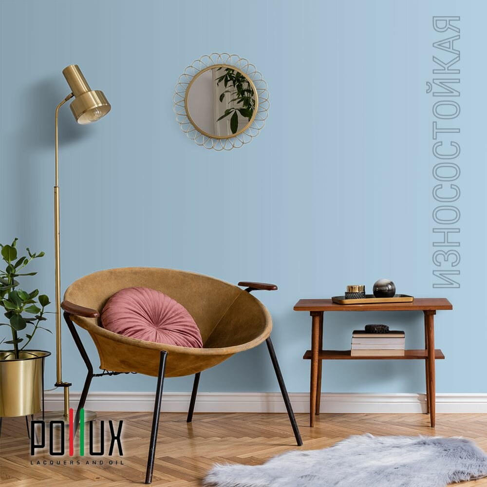 Краска моющаяся интерьерная для стен и потолков, Pollux INTERIOR без запаха, быстросохнущая, акриловая, матовое покрытие, цвет NCS S 5010-R90B, 1л.
