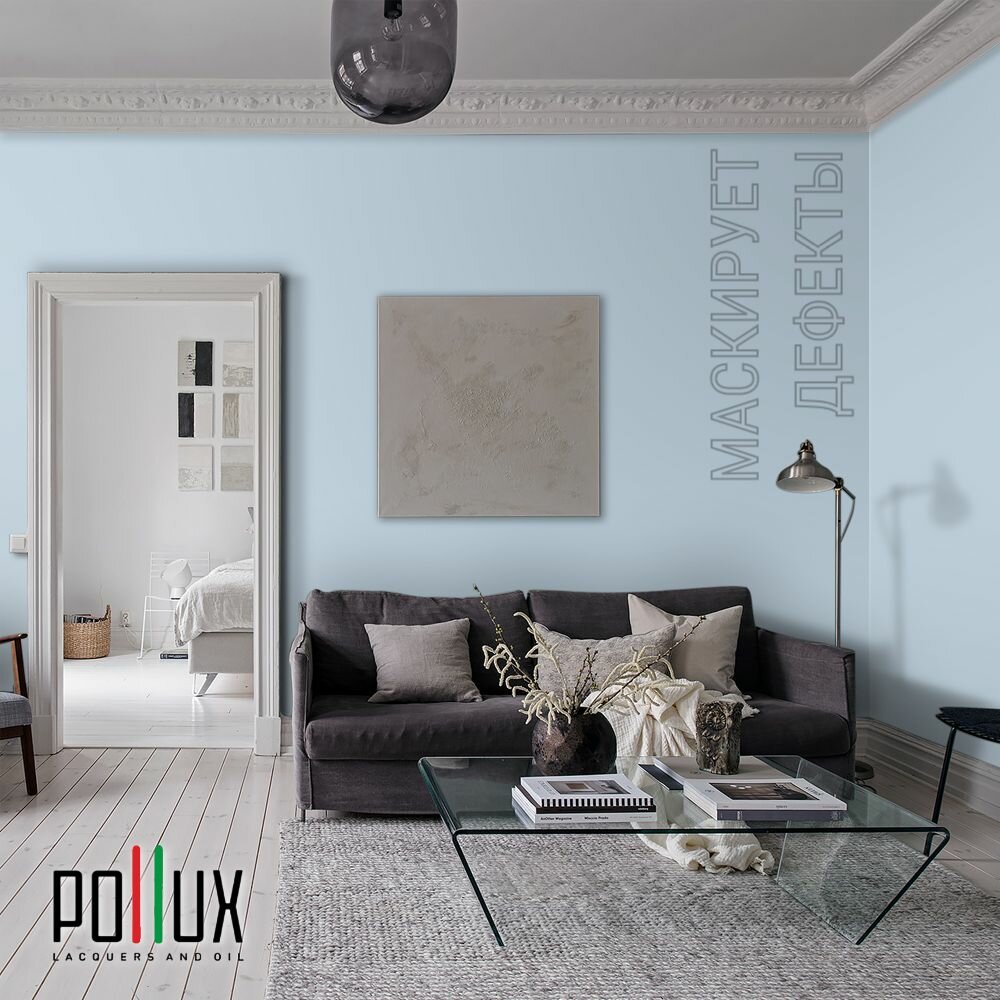Краска моющаяся интерьерная для стен и потолков, Pollux INTERIOR без запаха, быстросохнущая, акриловая, матовое покрытие, цвет NCS S 8010-R90B, 1л.