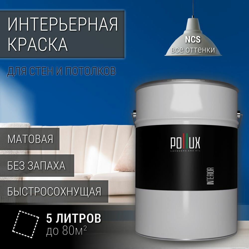 Краска моющаяся интерьерная для стен и потолков, Pollux INTERIOR без запаха, быстросохнущая, акриловая, матовое покрытие, цвет NCS S 8010-R90B, 5л.