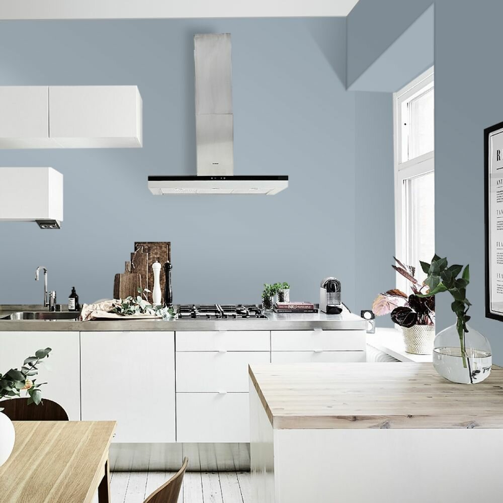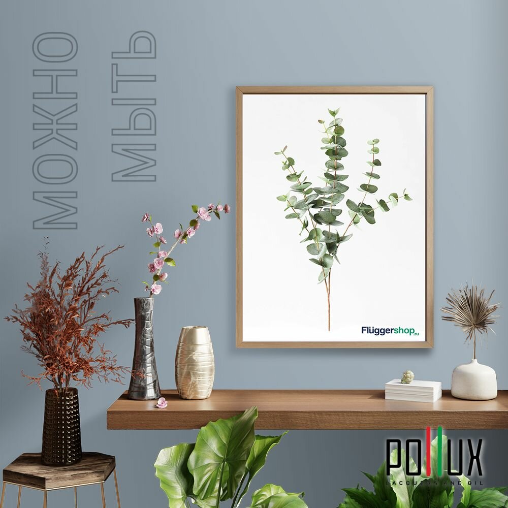 Краска моющаяся интерьерная для стен и потолков, Pollux INTERIOR без запаха, быстросохнущая, акриловая, матовое покрытие, цвет NCS S 4050-R90B, 1л.