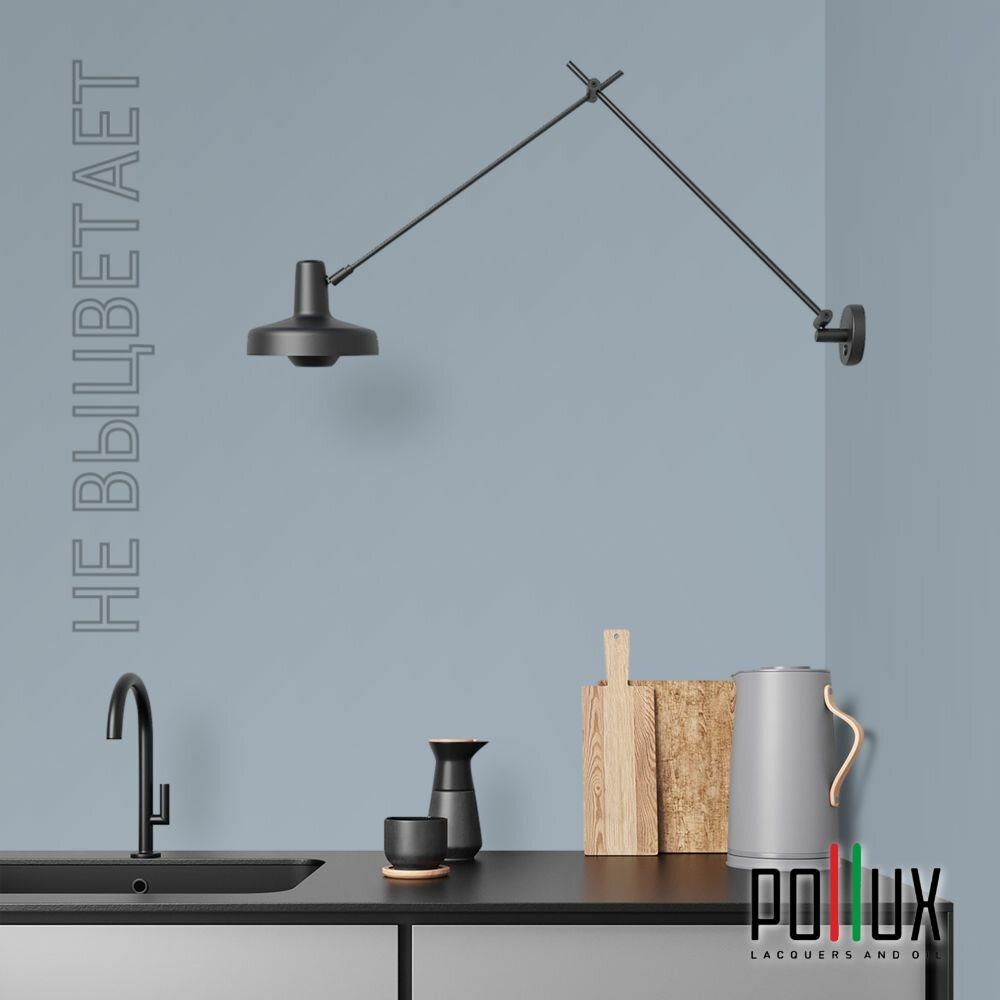 Краска моющаяся интерьерная для стен и потолков, Pollux INTERIOR без запаха, быстросохнущая, акриловая, матовое покрытие, цвет NCS S 5010-R90B, 1л.