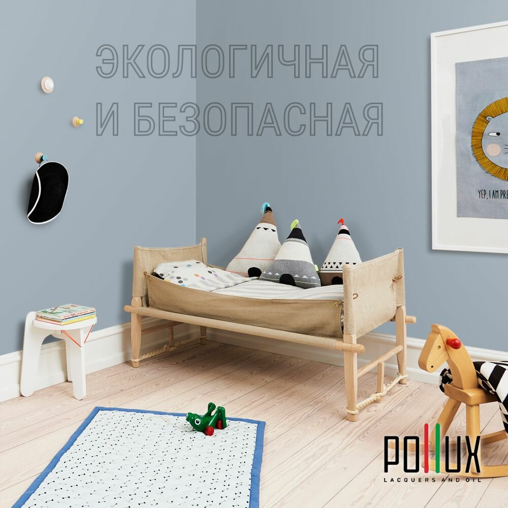 Краска моющаяся интерьерная для стен и потолков, Pollux INTERIOR без запаха, быстросохнущая, акриловая, матовое покрытие, цвет NCS S 8010-R90B, 1л.
