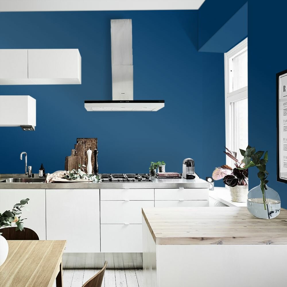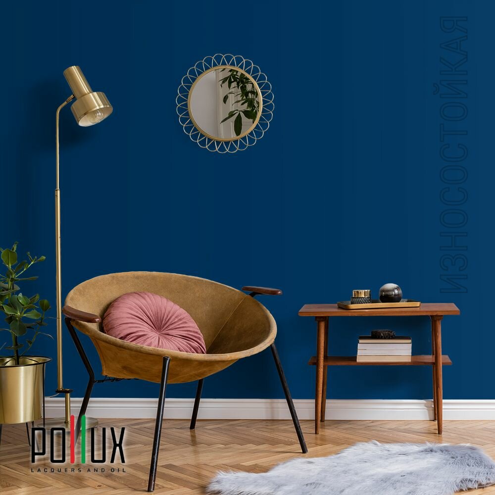 Краска моющаяся интерьерная для стен и потолков, Pollux INTERIOR без запаха, быстросохнущая, акриловая, матовое покрытие, цвет NCS S 4050-R90B, 1л.