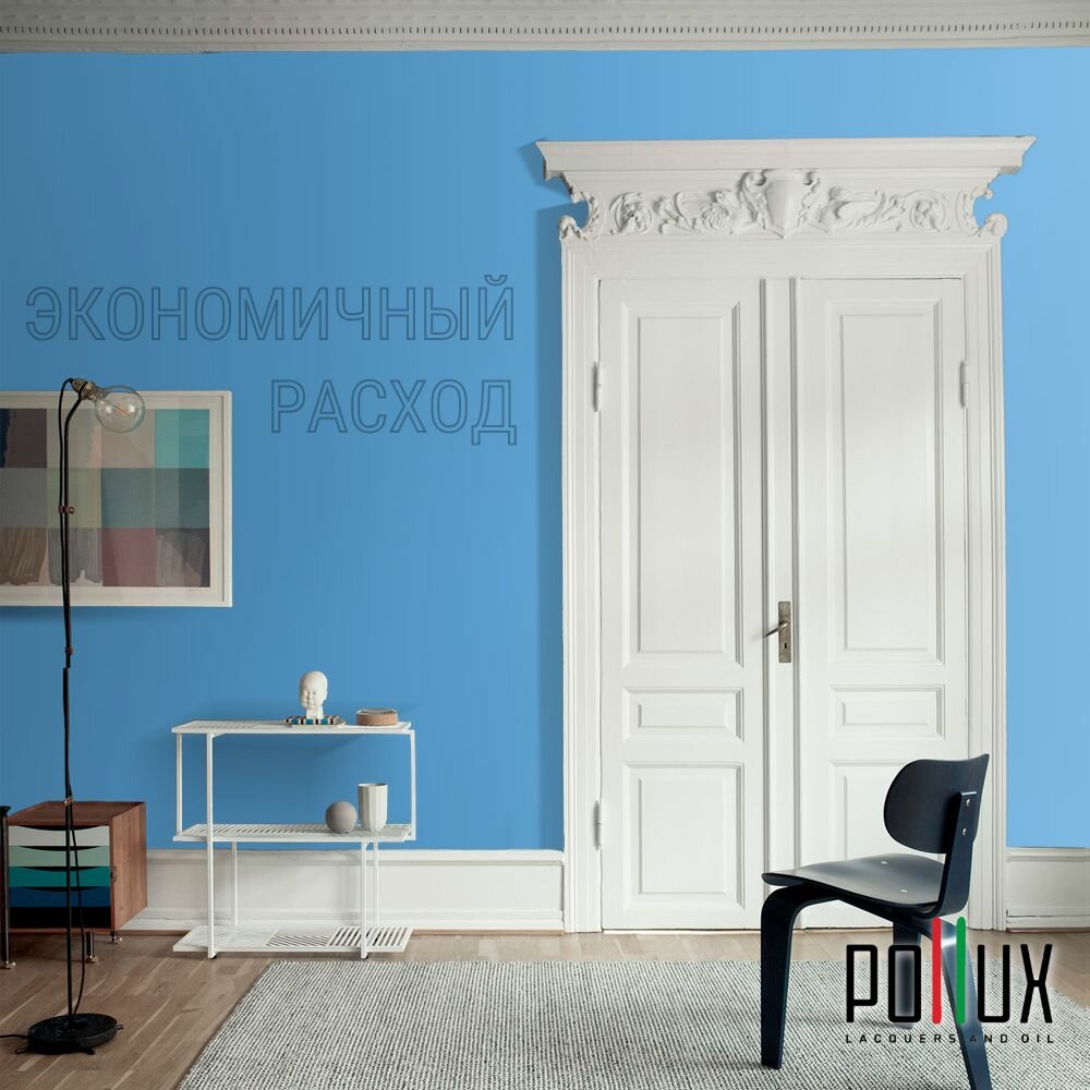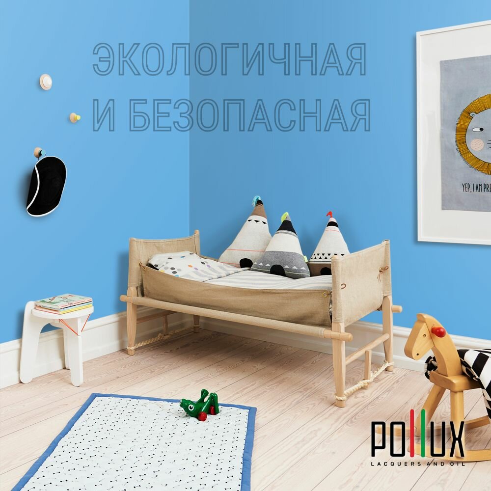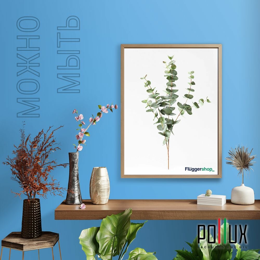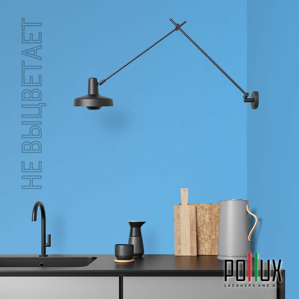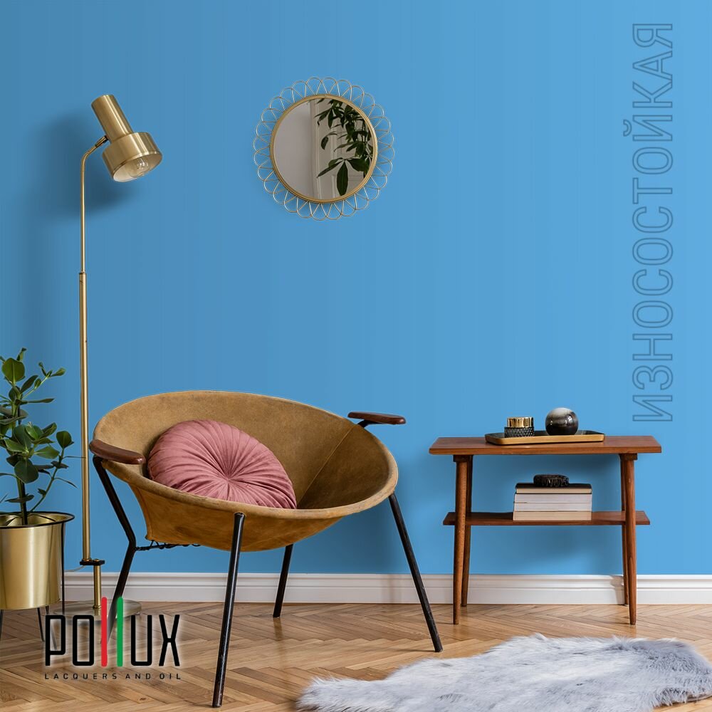 Краска моющаяся интерьерная для стен и потолков, Pollux INTERIOR без запаха, быстросохнущая, акриловая, матовое покрытие, цвет NCS S 4050-R90B, 1л.