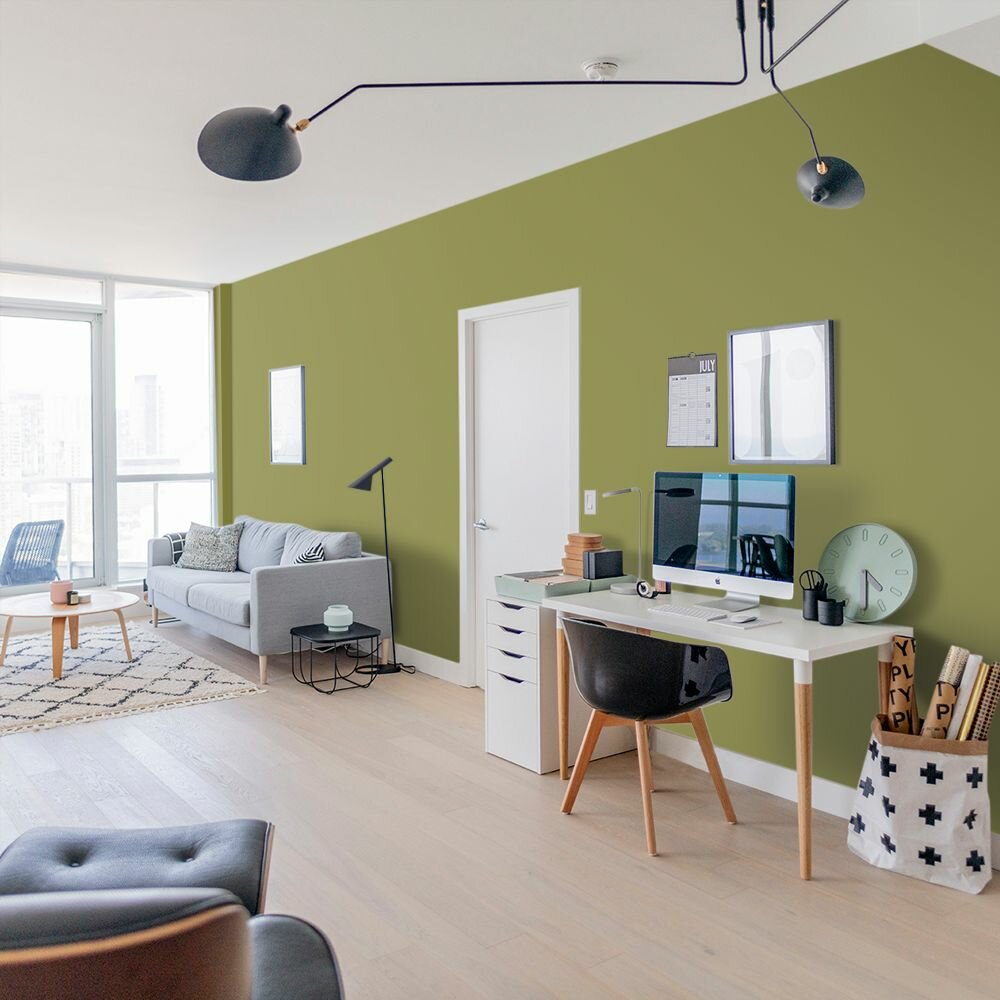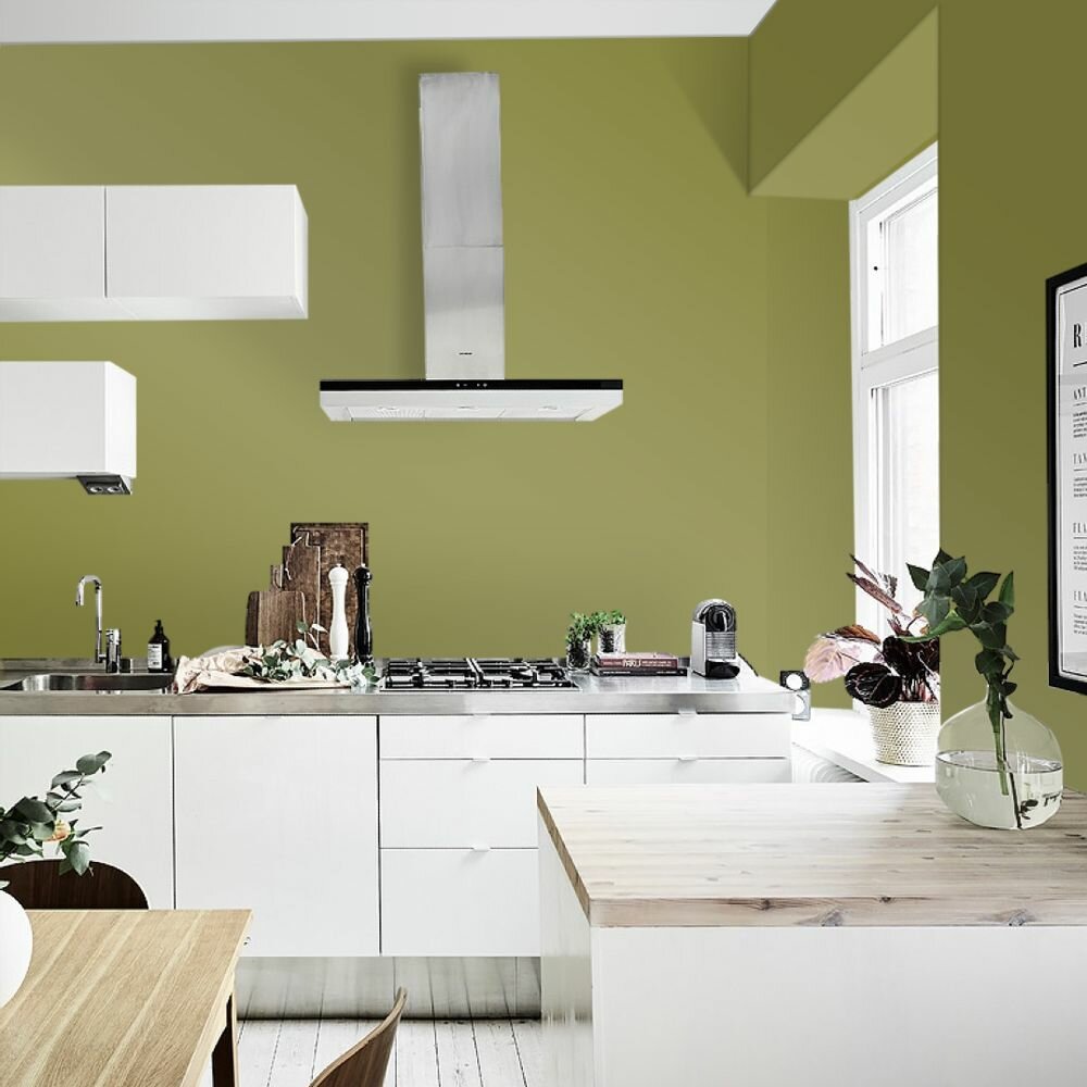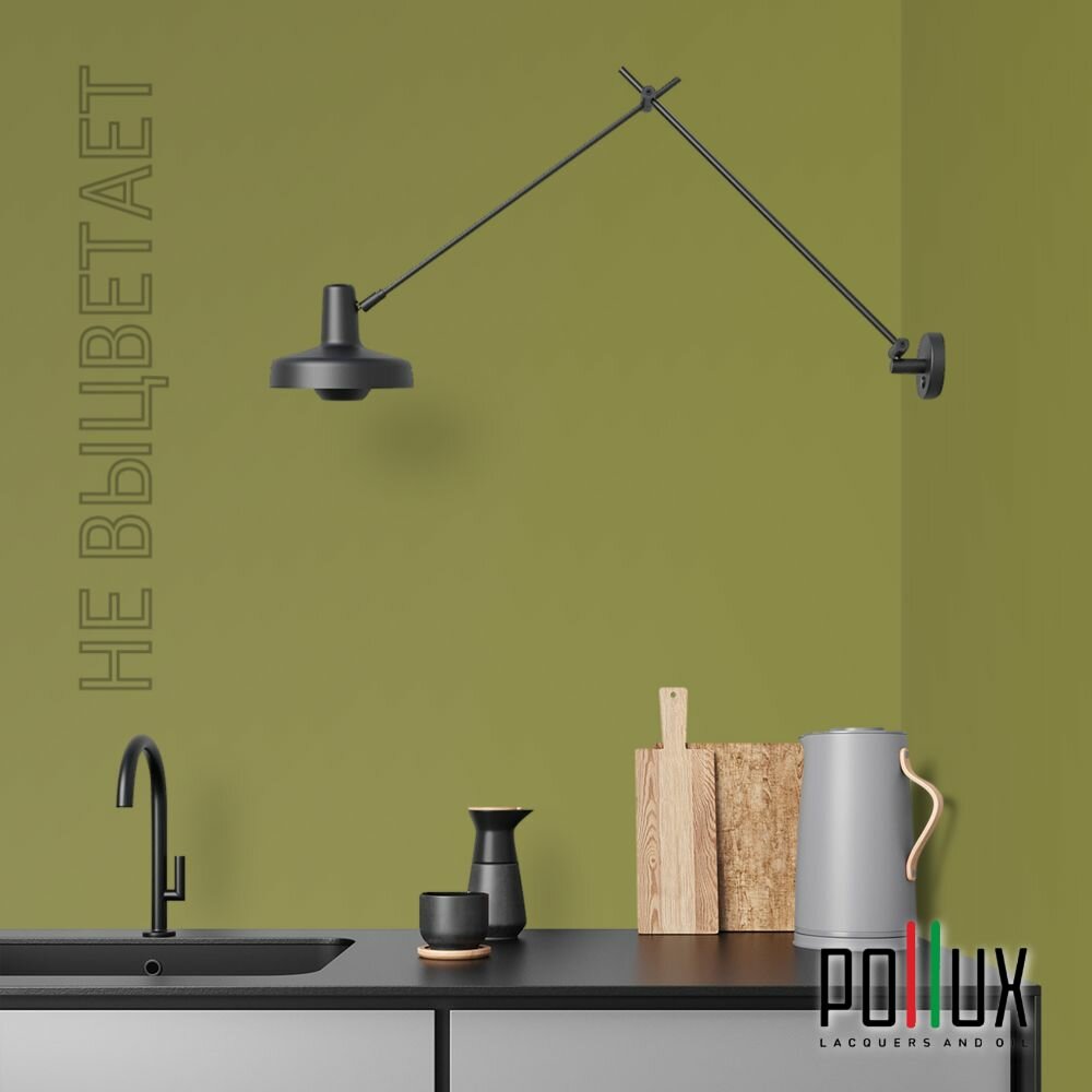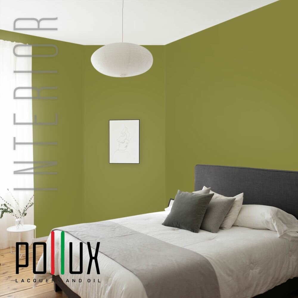 Краска моющаяся интерьерная для стен и потолков, Pollux INTERIOR без запаха, быстросохнущая, акриловая, матовое покрытие, цвет NCS S 6020-G70Y, 1л.