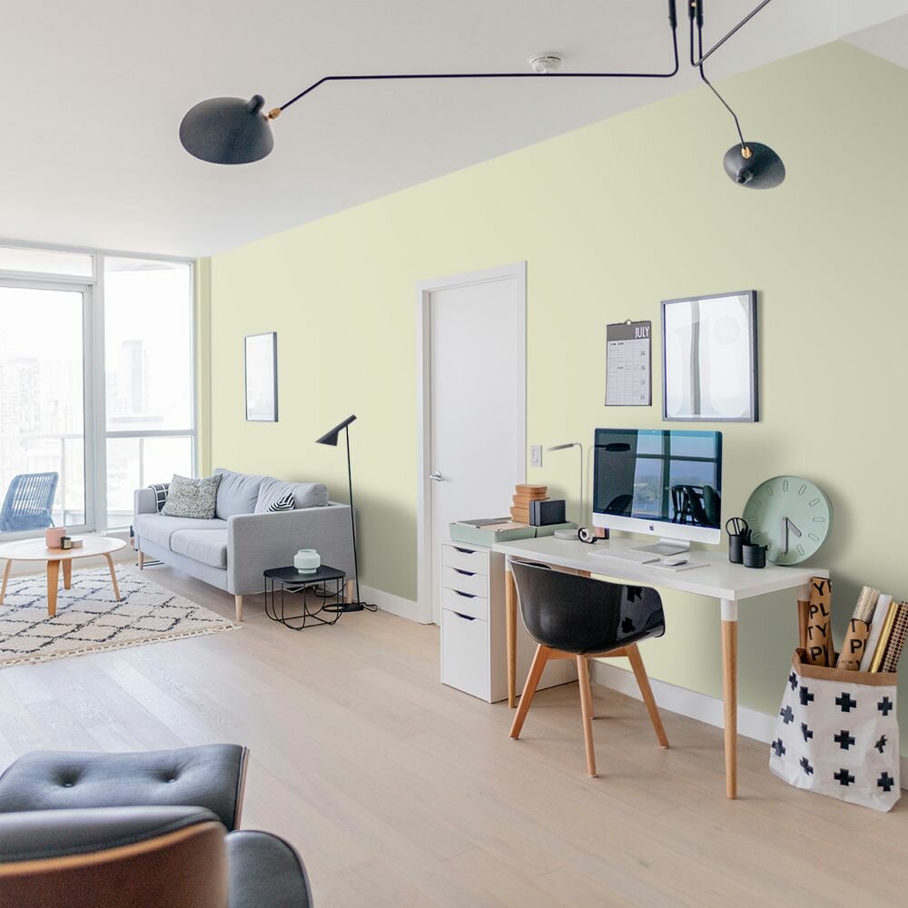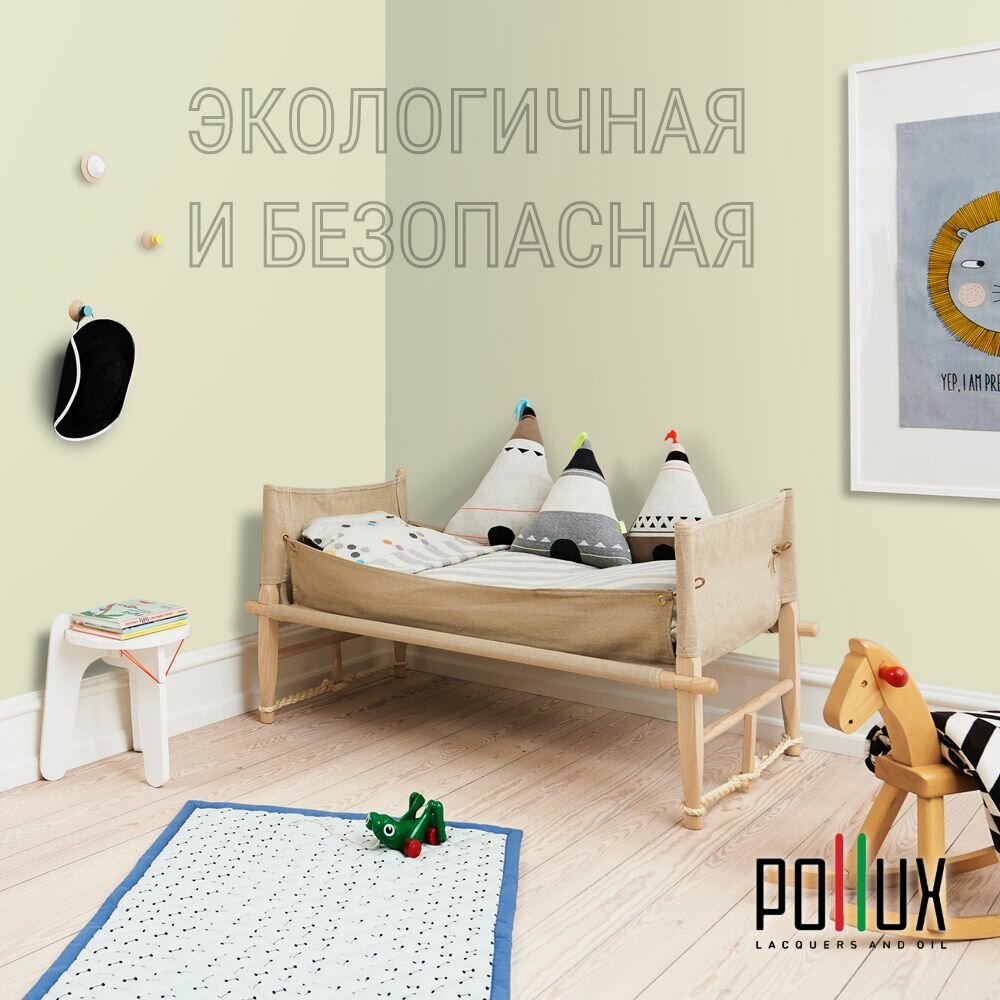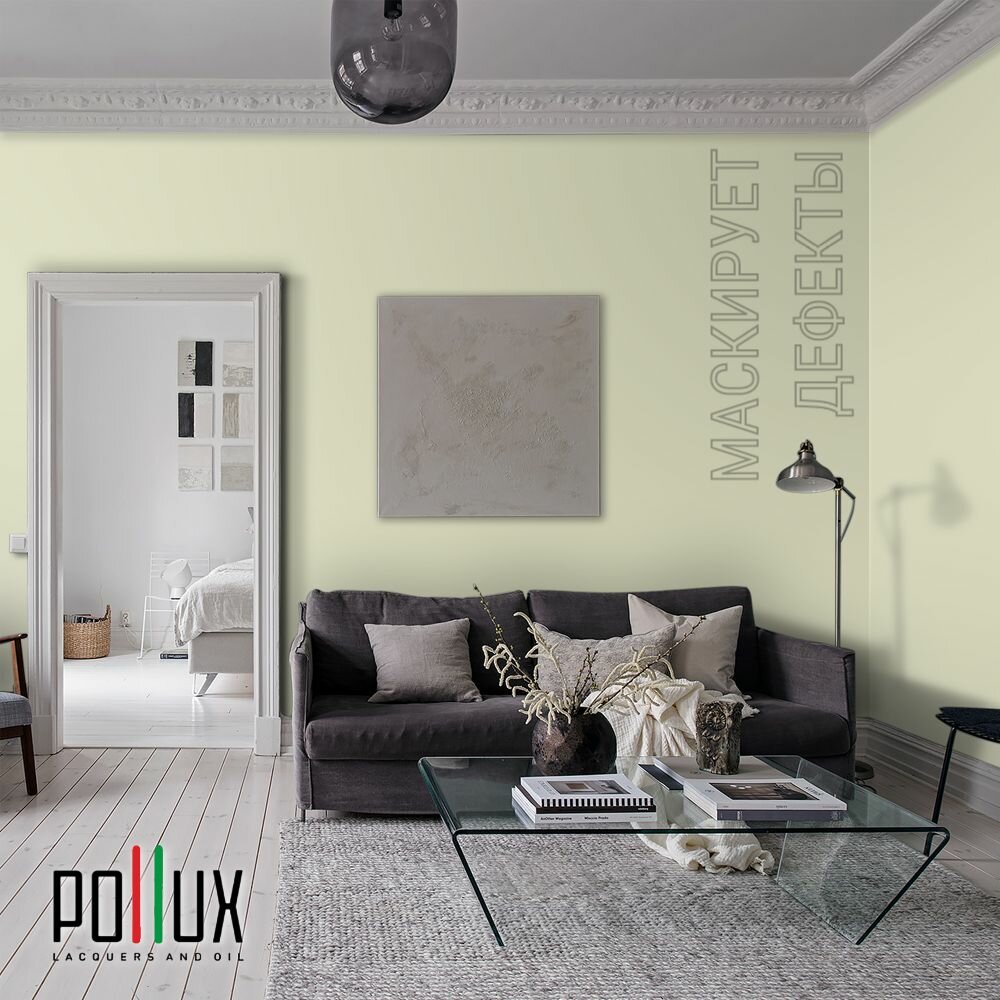 Краска моющаяся интерьерная для стен и потолков, Pollux INTERIOR без запаха, быстросохнущая, акриловая, матовое покрытие, цвет NCS S 0510-G70Y, 1л.