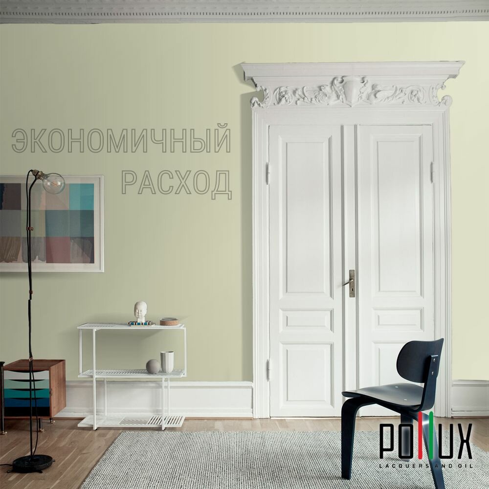 Краска моющаяся интерьерная для стен и потолков, Pollux INTERIOR без запаха, быстросохнущая, акриловая, матовое покрытие, цвет NCS S 1040-G70Y, 1л.