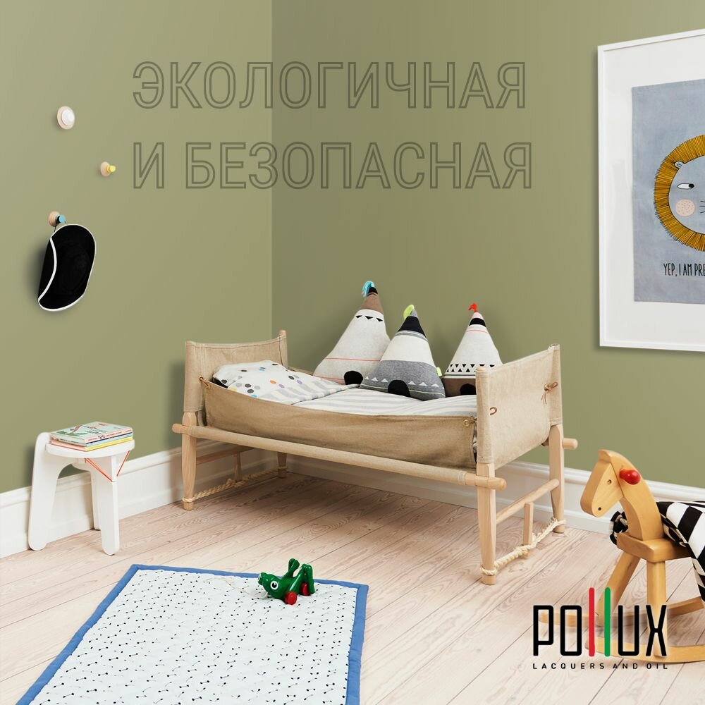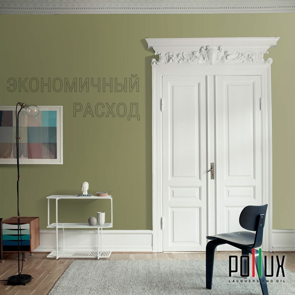 Краска моющаяся интерьерная для стен и потолков, Pollux INTERIOR без запаха, быстросохнущая, акриловая, матовое покрытие, цвет NCS S 8010-G70Y, 1л.