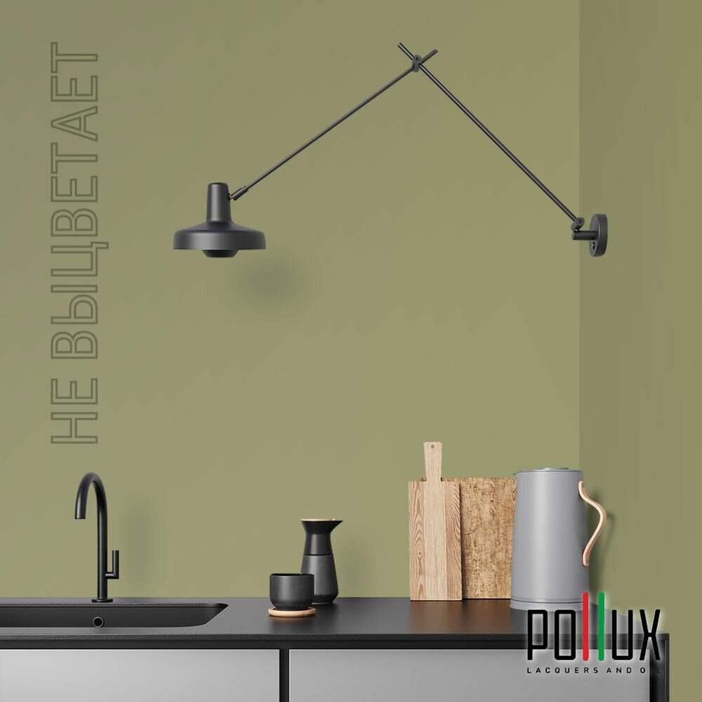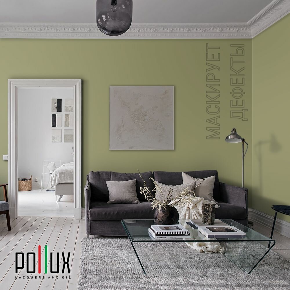 Краска моющаяся интерьерная для стен и потолков, Pollux INTERIOR без запаха, быстросохнущая, акриловая, матовое покрытие, цвет NCS S 6030-G70Y, 1л.