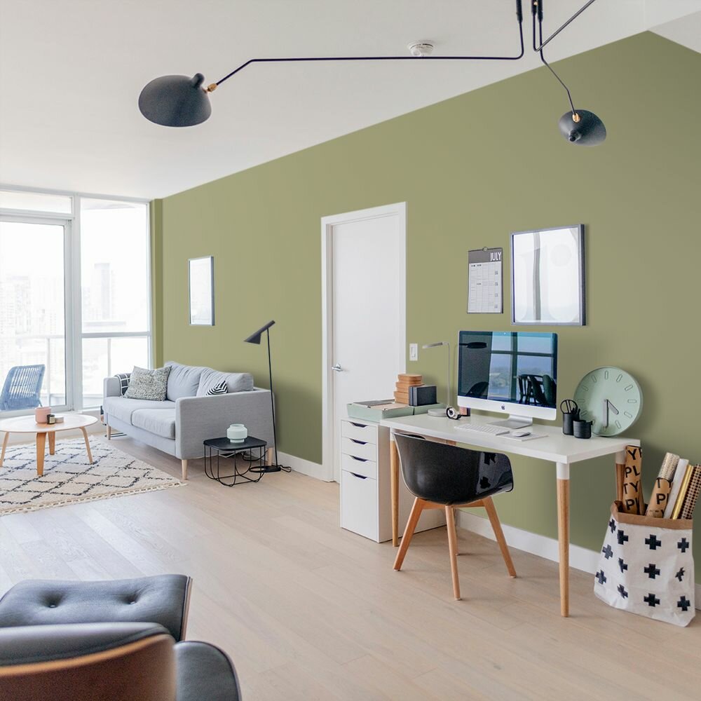 Краска моющаяся интерьерная для стен и потолков, Pollux INTERIOR без запаха, быстросохнущая, акриловая, матовое покрытие, цвет NCS S 6010-G70Y, 1л.