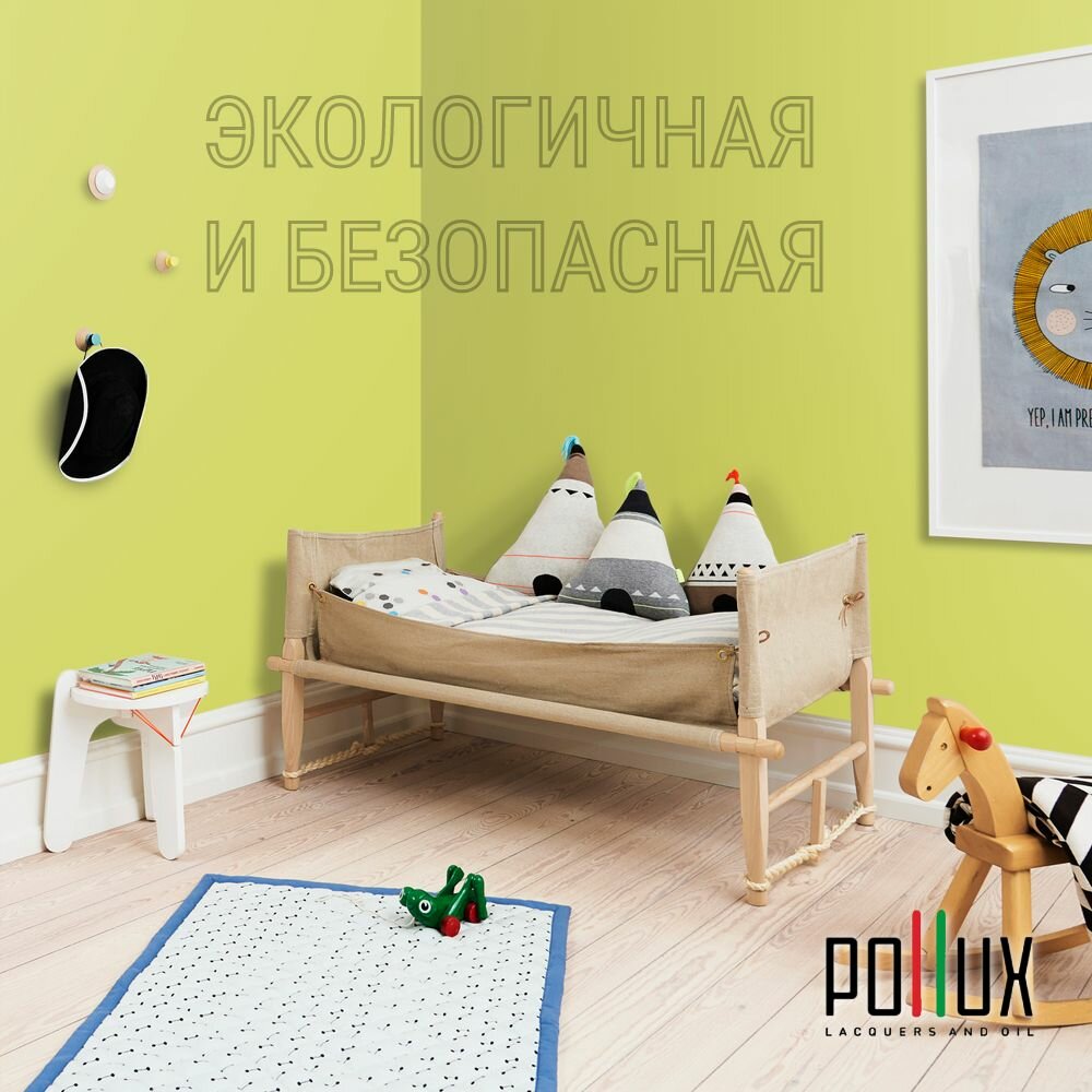 Краска моющаяся интерьерная для стен и потолков, Pollux INTERIOR без запаха, быстросохнущая, акриловая, матовое покрытие, цвет NCS S 1040-G70Y, 1л.