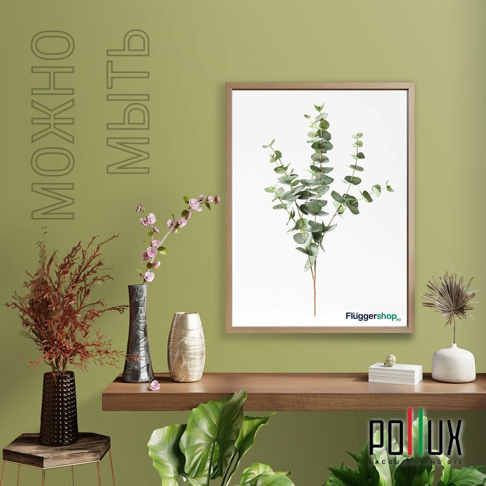 Краска моющаяся интерьерная для стен и потолков, Pollux INTERIOR без запаха, быстросохнущая, акриловая, матовое покрытие, цвет NCS S 6020-G70Y, 1л.