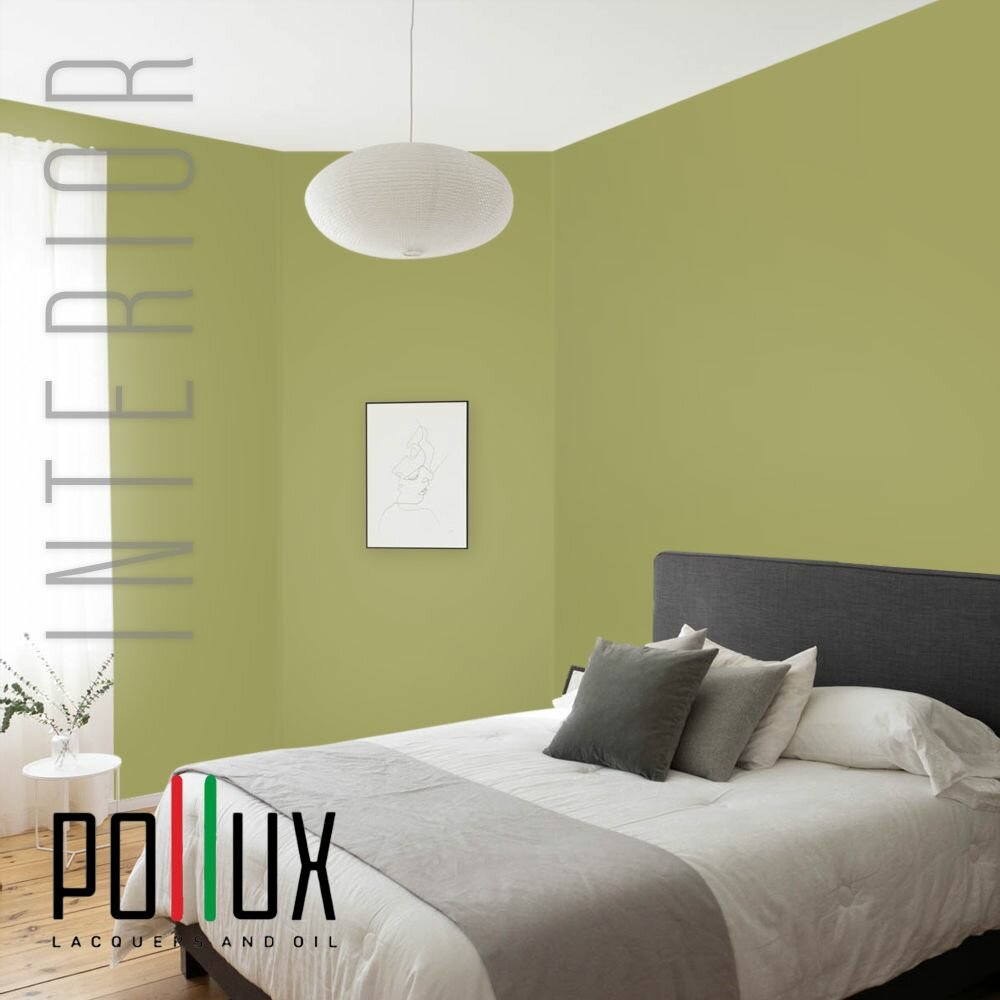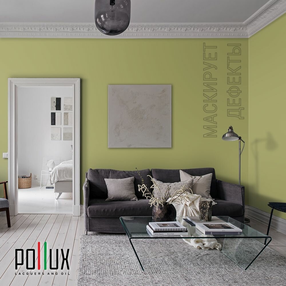 Краска моющаяся интерьерная для стен и потолков, Pollux INTERIOR без запаха, быстросохнущая, акриловая, матовое покрытие, цвет NCS S 6030-G70Y, 1л.