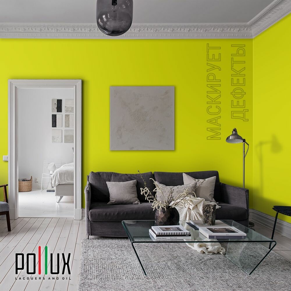 Краска моющаяся интерьерная для стен и потолков, Pollux INTERIOR без запаха, быстросохнущая, акриловая, матовое покрытие, цвет NCS S 1060-G70Y, 1л.