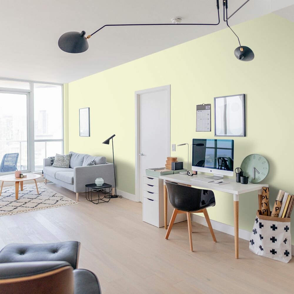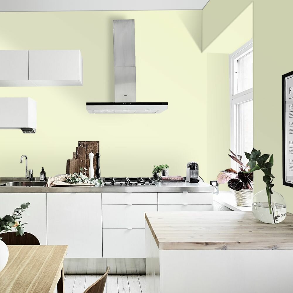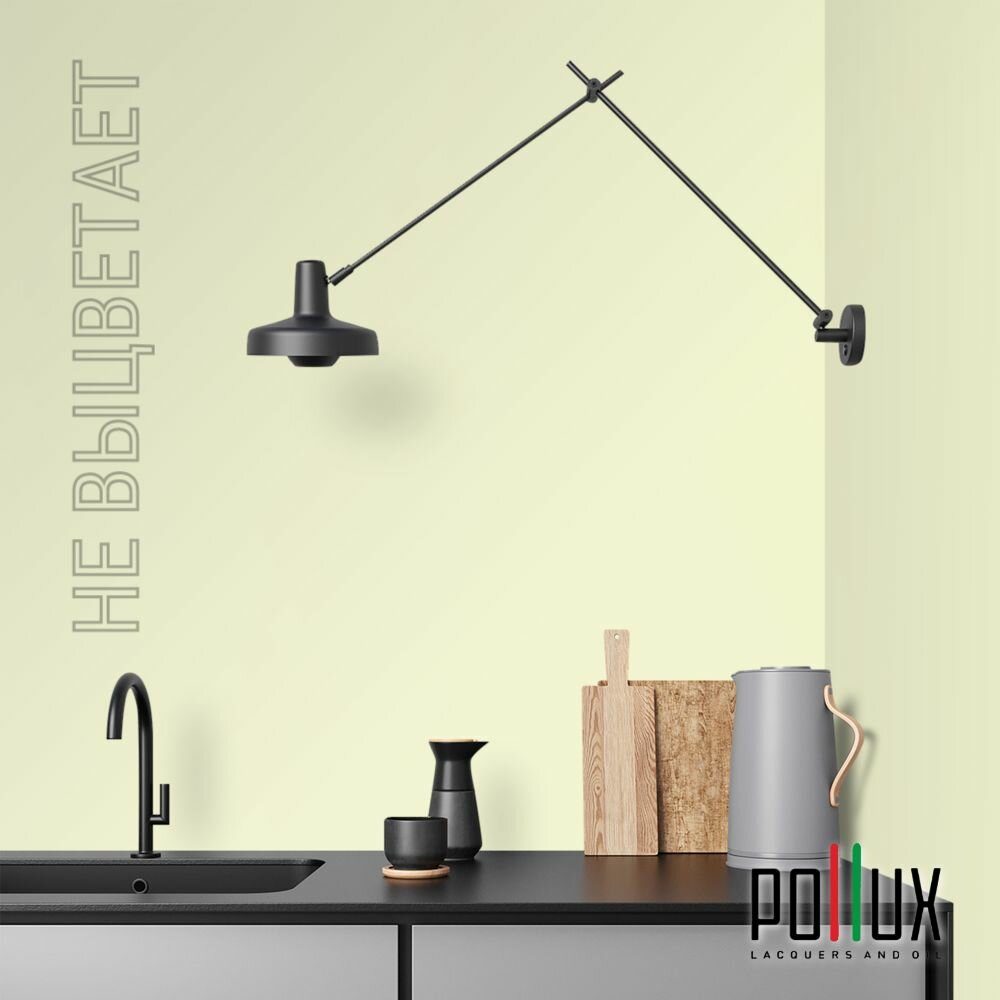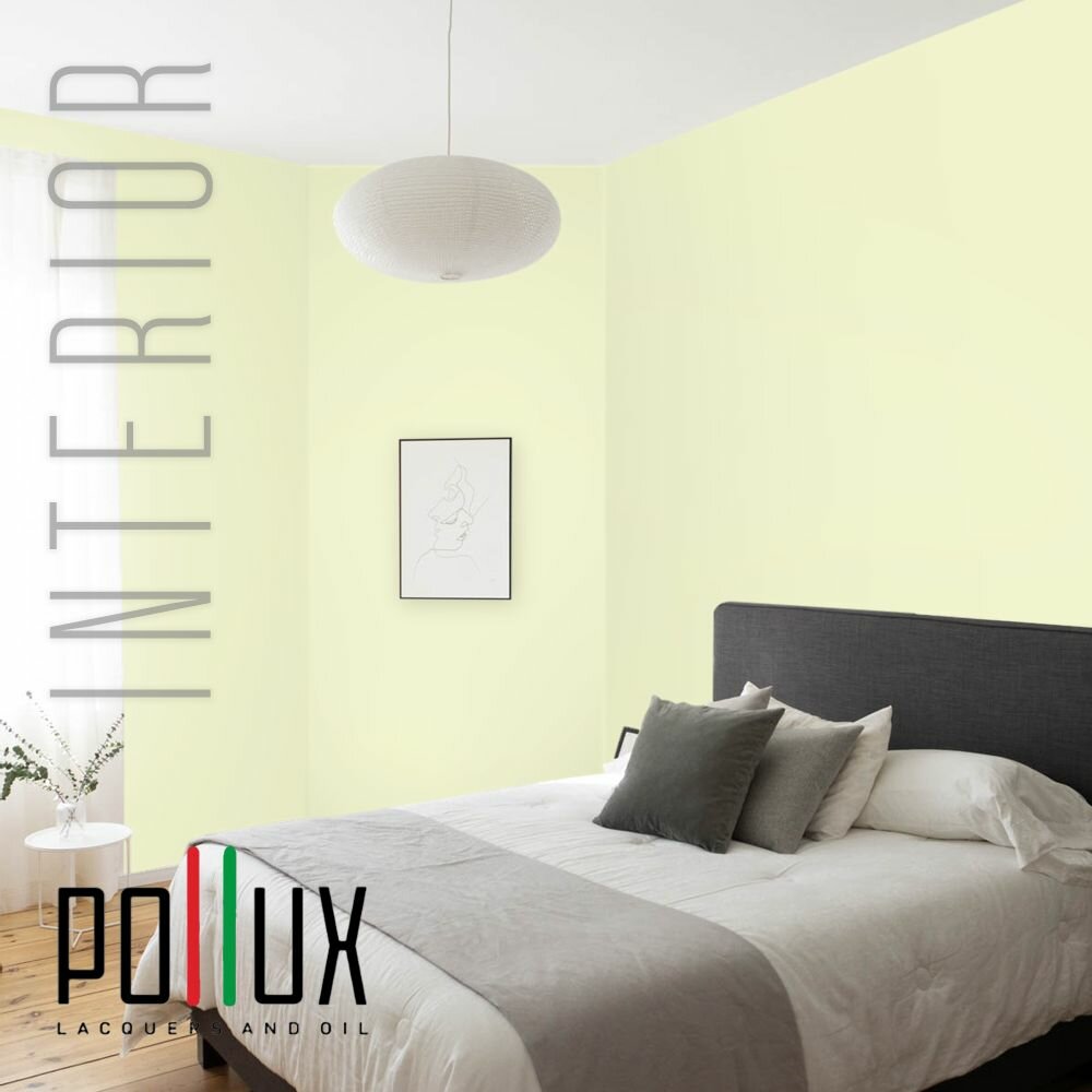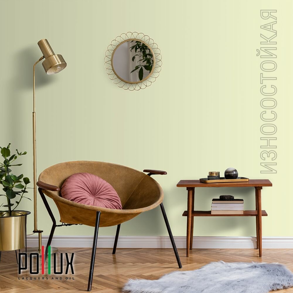 Краска моющаяся интерьерная для стен и потолков, Pollux INTERIOR без запаха, быстросохнущая, акриловая, матовое покрытие, цвет NCS S 0520-G70Y, 1л.
