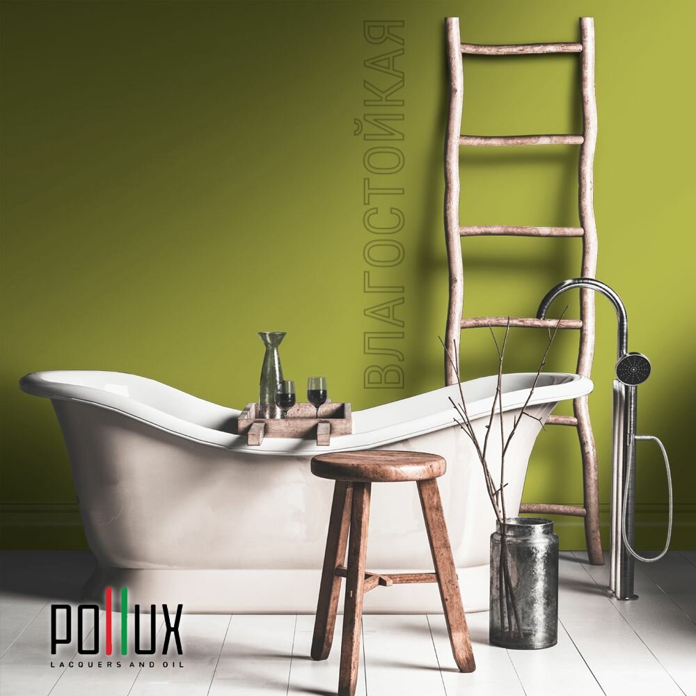 Краска моющаяся интерьерная для стен и потолков, Pollux INTERIOR без запаха, быстросохнущая, акриловая, матовое покрытие, цвет NCS S 5030-G70Y, 1л.