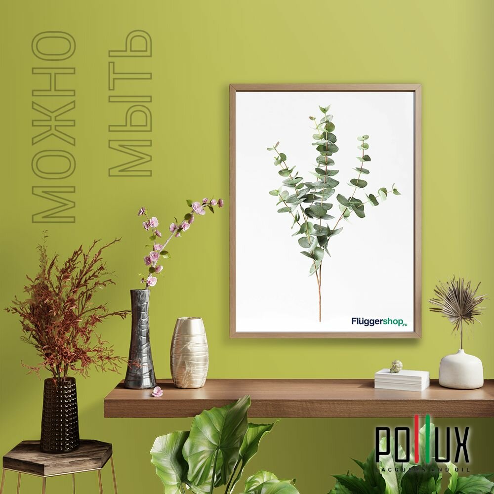 Краска моющаяся интерьерная для стен и потолков, Pollux INTERIOR без запаха, быстросохнущая, акриловая, матовое покрытие, цвет NCS S 6020-G70Y, 1л.