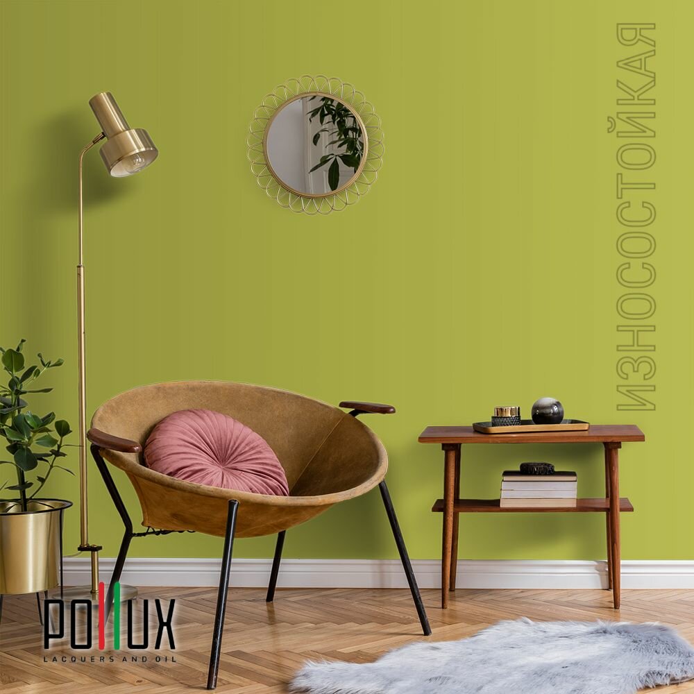 Краска моющаяся интерьерная для стен и потолков, Pollux INTERIOR без запаха, быстросохнущая, акриловая, матовое покрытие, цвет NCS S 6030-G70Y, 1л.